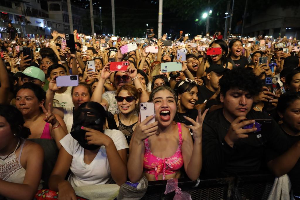 Acapulco, Gro., 23 de mayo de 2023.- Con la asistencia de más de 60 mil personas, se realizó con gran éxito el concierto gratuito de Kenia Os, organizado por el Gobierno Municipal encabezado por la presidenta, Abelina López Rodríguez, a través de la Secretaría de Bienestar y Desarrollo Comunitario.