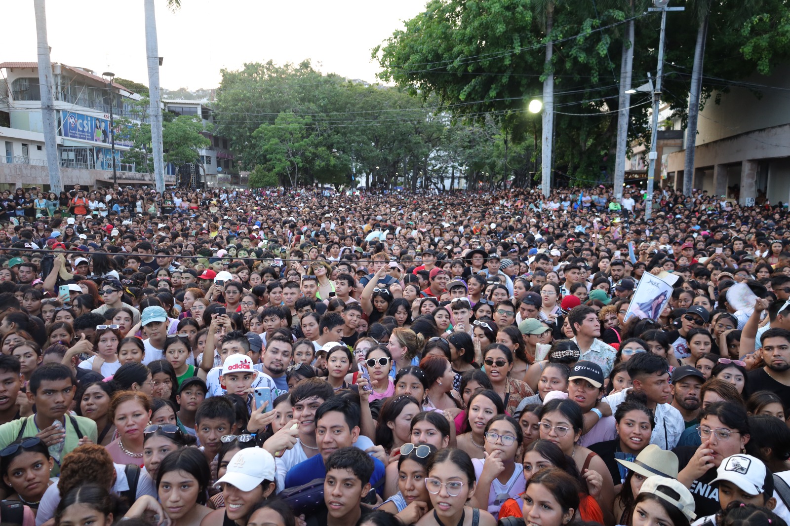 Horas antes del evento, miles de jóvenes abarrotaron el Zócalo de la ciudad y calles aledañas para disfrutar del concierto totalmente gratuito, de la Kenini, preparado por la alcaldesa y la secretaria de Bienestar y Desarrollo Comunitario, Leticia Lozano Zavala, por el Día del Estudiante.