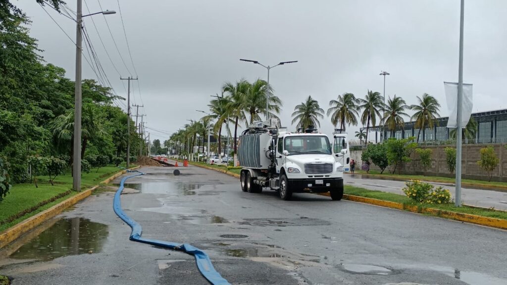 En coordinación con la Comisión de Agua Potable, Alcantarillado y Saneamiento del Estado (CAPASEG) y la Secretaría de Turismo del Estado de Guerrero (SECTUR Gro) han desplegado maquinaria especializada para agilizar el desalojo de agua pluvial en la zona.