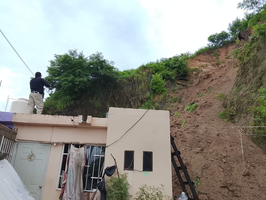 En la colonia San Agustín, se registró la caída de un talud sobre una habitación. La vivienda ya había sido notificada previamente por ubicarse en una zona de alto riesgo. En este caso, personal de Protección Civil brindó atención inmediata y elaboró el dictamen correspondiente.
