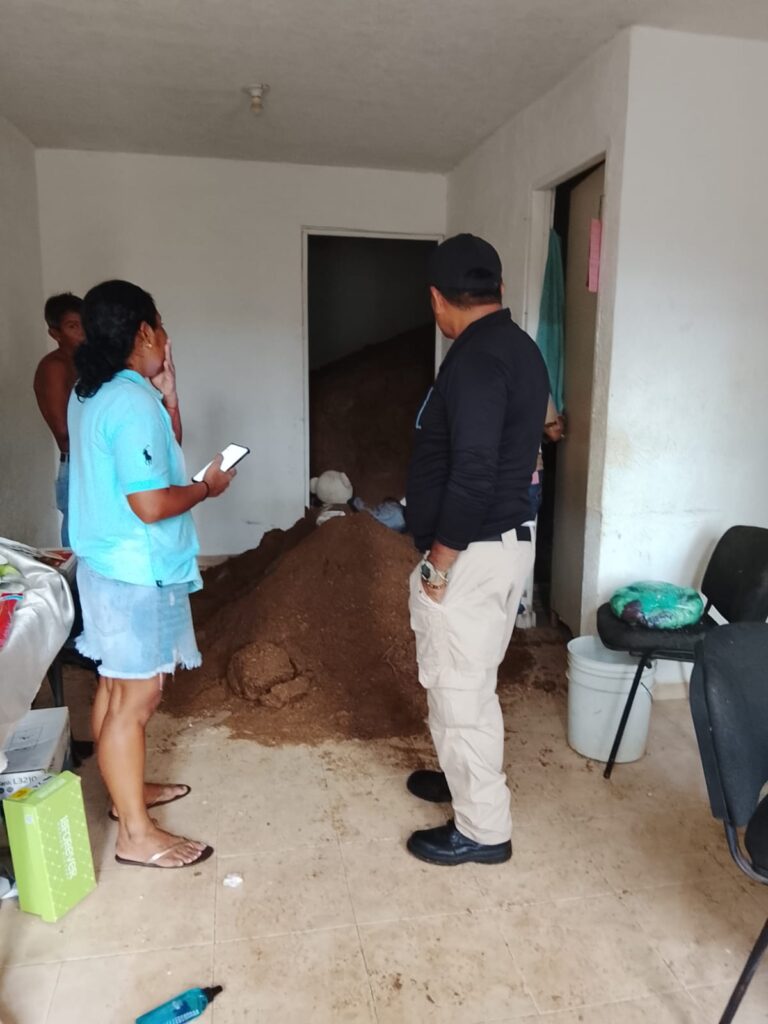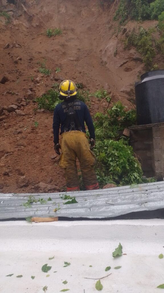 En la colonia San Agustín, se registró la caída de un talud sobre una habitación. La vivienda ya había sido notificada previamente por ubicarse en una zona de alto riesgo. En este caso, personal de Protección Civil brindó atención inmediata y elaboró el dictamen correspondiente.