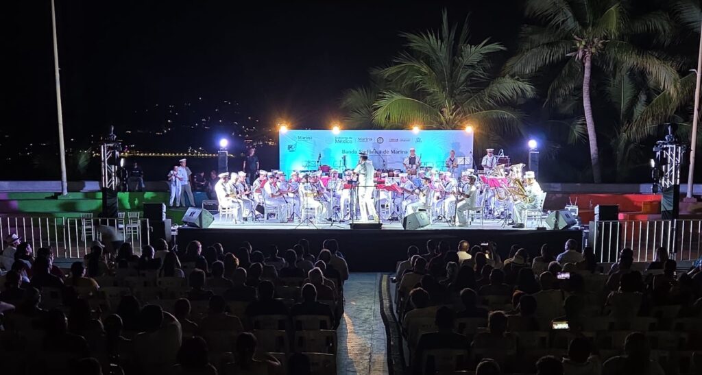 Acapulco, Gro.– La Secretaría de Marina a través de la Armada de México, por conducto de los mandos de la Octava Región Naval y la Décima Octava Zona Naval con sede en Acapulco y Zihuatanejo de Azueta, Guerrero, respectivamente, en coordinación con los presidentes municipales de Coyuca de Benítez, Tecpán de Galeana y Zihuatanejo de Azueta, Guerrero, en días pasados organizaron conciertos de la Banda Sinfónica de la Secretaría de Marina en citados municipios.