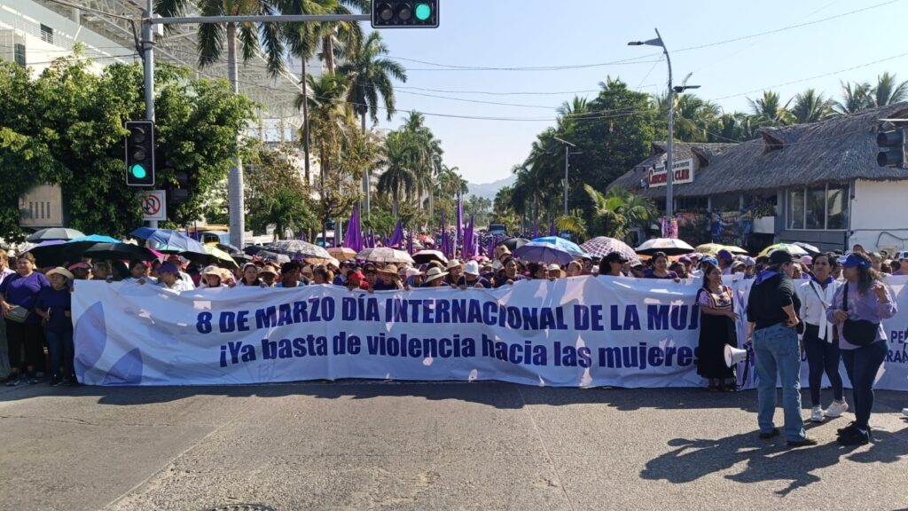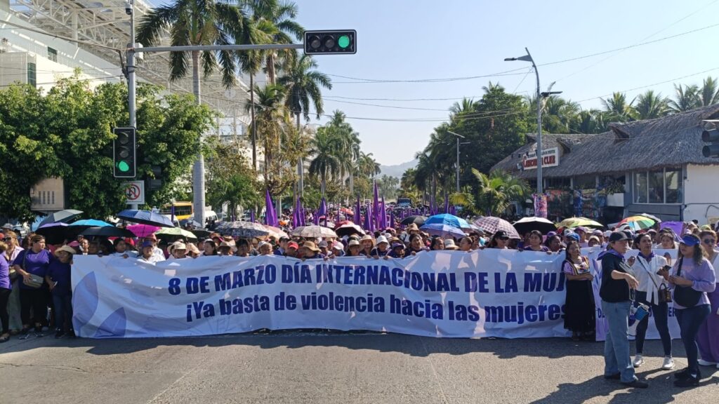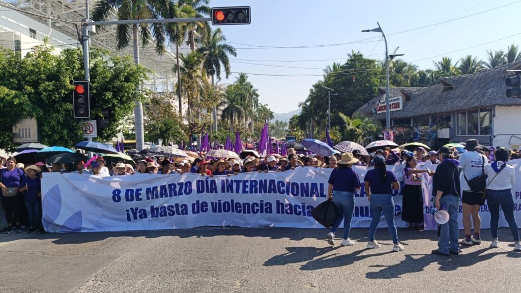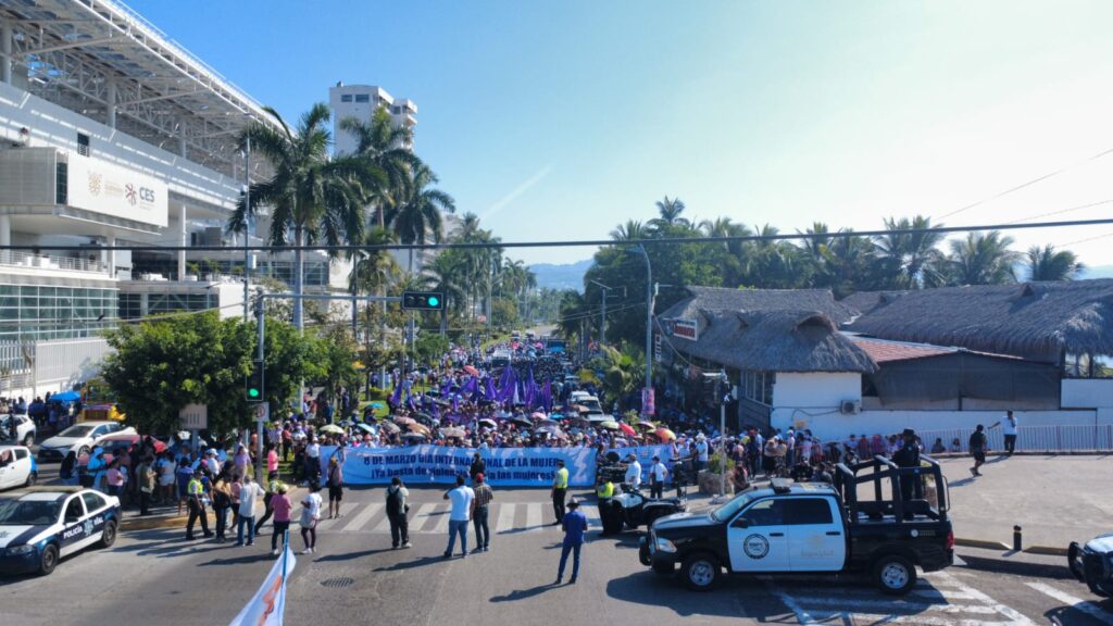 En el marco del Día Internacional de la Mujer, colectivos y grupos de mujeres realizaron una manifestación sobre la Avenida Costera Miguel Alemán, en el puerto de Acapulco. La movilización partió desde la Vía Rápida con dirección hacia la zona de Caleta, donde las participantes marcharon para exigir respeto a los derechos de las mujeres, así como justicia e igualdad, generando momentáneamente afectaciones a la circulación vehicular en esta importante vía turística del puerto.
