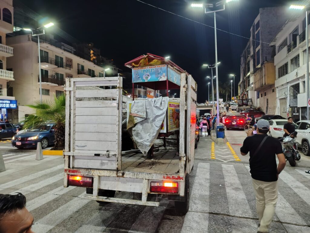 El dispositivo contempló acciones para liberar la circulación vehicular en calles y accesos que durante la noche registran concentración de personas y actividad comercial. Personal municipal recorrió el área para retirar obstáculos sobre la vía pública y restablecer el tránsito en este punto de intensa movilidad turística.