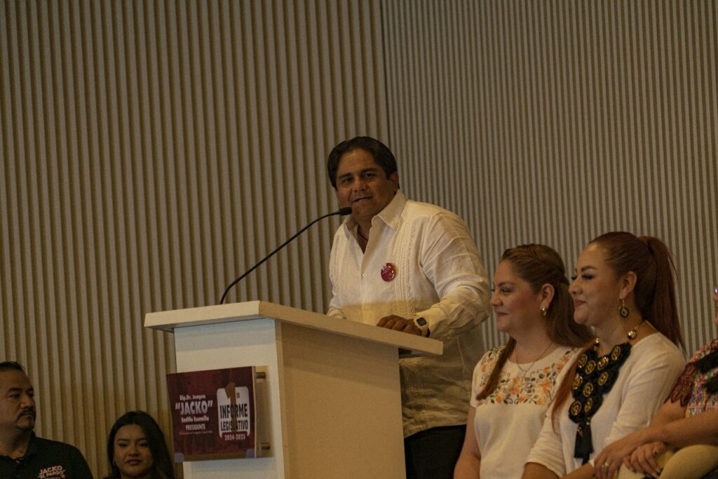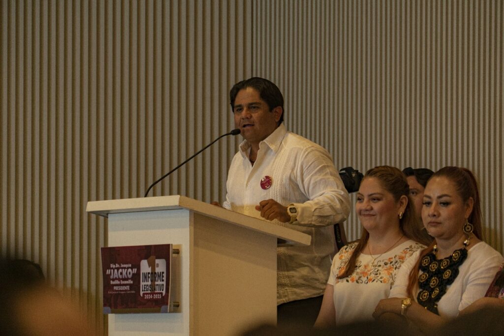ACAPULCO, Gro., 30 de octubre del 2025.- Arropado por prominentes figuras de la política estatal, representantes populares, dirigentes empresariales, académicos, sociedad civil y, sobre todo, con el cariño desbordado del pueblo acapulqueño, este jueves rindió su Primer Informe de Actividades Legislativas y de Gestión el diputado local Joaquín Jacko Badillo Escamilla.