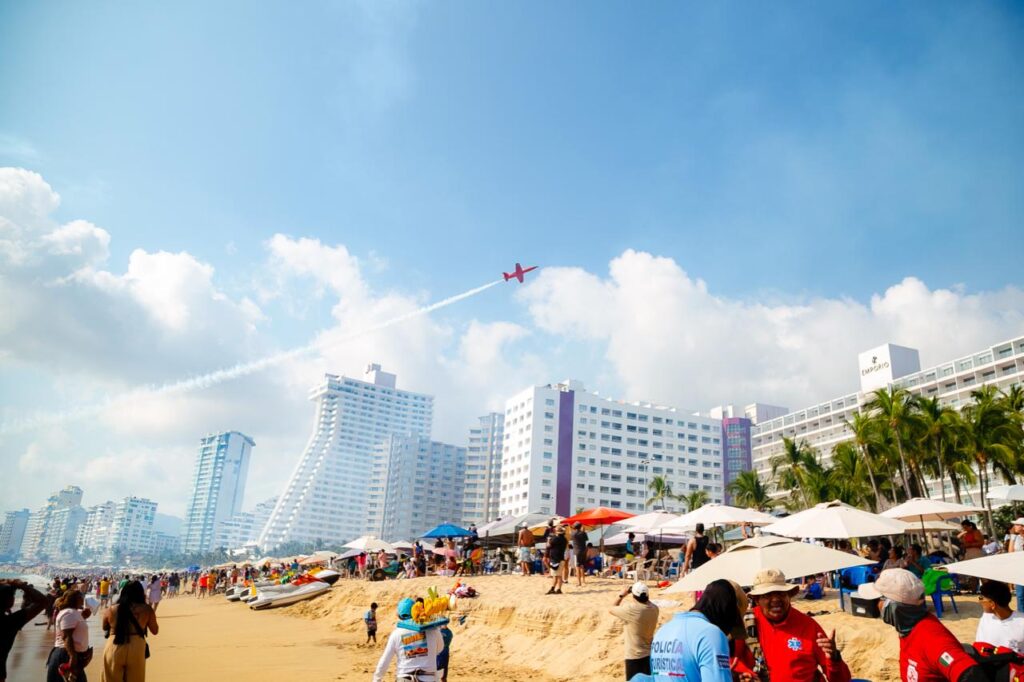Acapulco, Gro., 23 de noviembre de 2025.- El Hogar del Sol vive uno de sus fines de semana más dinámicos del año al recibir a miles de turistas que disfrutan del segundo día del Acapulco Airshow 2025, consolidando al puerto como un referente turístico nacional e internacional en el último bimestre de 2025. Esta proyección forma parte de la nueva política turística impulsada por el gobierno del estado, encabezado por Evelyn Salgado Pineda, a través de la Secretaría de Turismo Estatal dirigida por Simón Quiñones Orozco.
