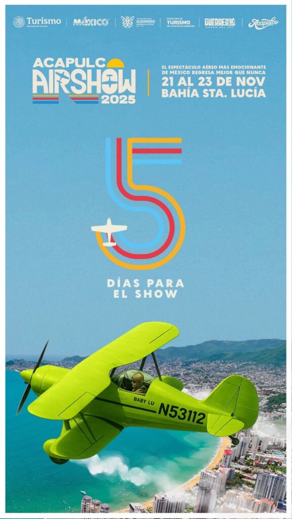 A sólo cinco días de que inicie uno de los eventos más esperados del año, el Air Show Acapulco 2025, el puerto se prepara para recibir a miles de visitantes que del 21 al 23 de noviembre disfrutarán de acrobacias aéreas, exhibiciones y la tradicional convivencia familiar que caracteriza estas jornadas frente al mar.