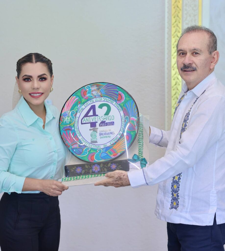 Chilpancingo, Gro. 14 de octubre del 2025. – La gobernadora Evelyn Salgado Pineda celebró el 42 aniversario del Colegio de Bachilleres del estado de Guerrero al reunirse con el director general Jesús Villanueva Vega, con quien reconoció la labor de las maestras, maestros y personal administrativo que fortalecen cada día la educación media superior en el estado.