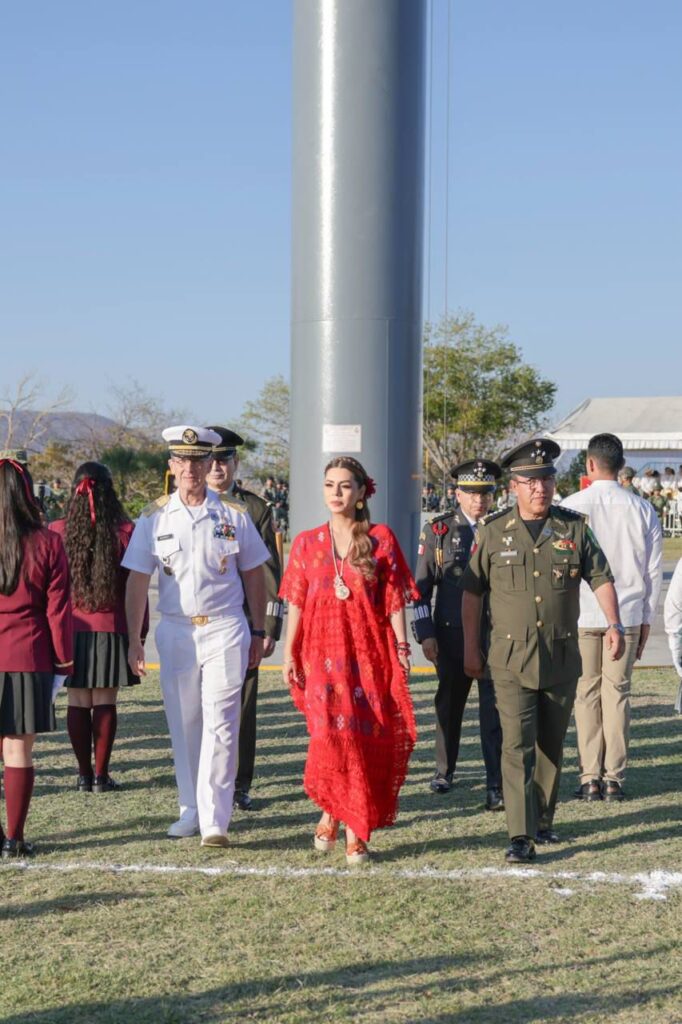 “Guerrero contribuye a construir el segundo piso de la transformación de México, llevando bienestar, derechos y oportunidades a cada región del estado”, expresó ante autoridades civiles y militares, así como estudiantes y docentes que participaron en la ceremonia.