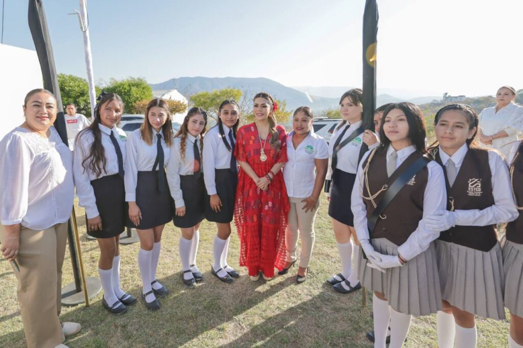 *Abandera a 27 escuelas de nivel medio superior en el Tehuehue y de manera simultánea con la presidenta Claudia Sheinbaum