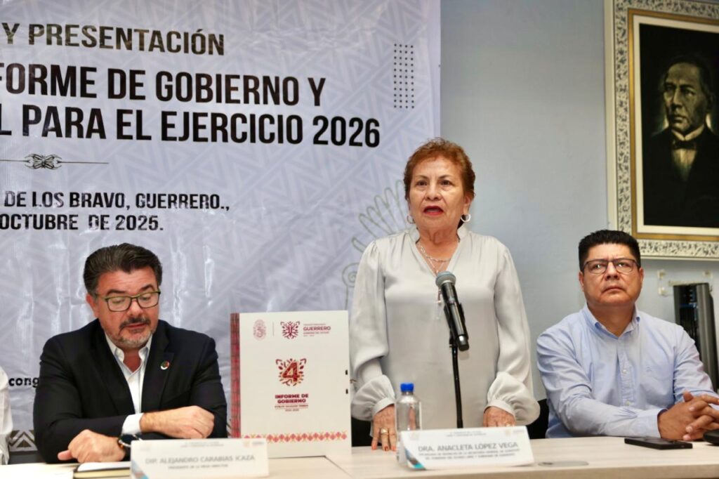 Cumpliendo en tiempo y forma con el artículo 73 de la Constitución Política del Estado Libre y Soberano de Guerrero, a nombre de la titular del Poder Ejecutivo, la encargada de despacho de la Secretaría General de Gobierno, Anacleta López Vega, hizo la entrega del informe por escrito a las diputadas y diputados que integran la Mesa Directiva y la Junta de Coordinación Política (Jucopo) del Congreso local.