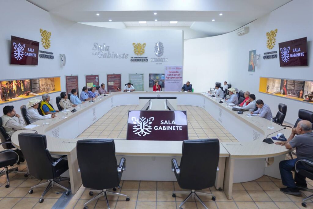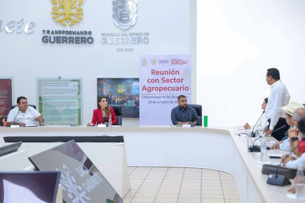 Chilpancingo, Gro., 30 de octubre del 2025. – La gobernadora Evelyn Salgado Pineda se reunió con representantes del sector agropecuario de Guerrero, para impulsar trazar la ruta de las gestiones que permitan garantizar precios justos, apoyos directos, mejores condiciones para la producción y el fortalecimiento de las cooperativas del campo.