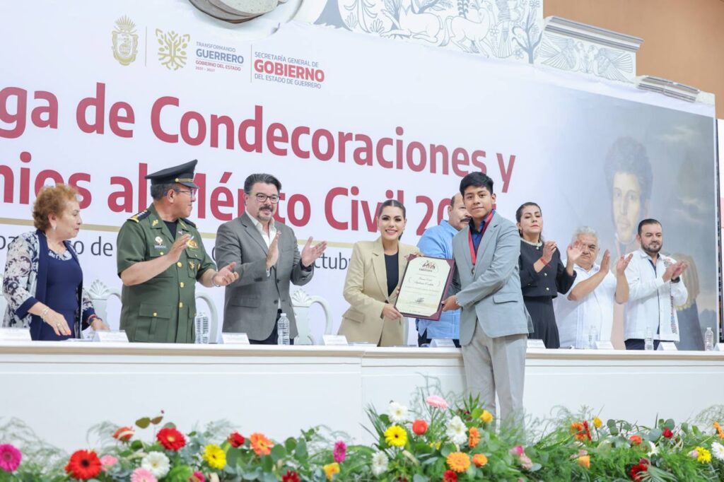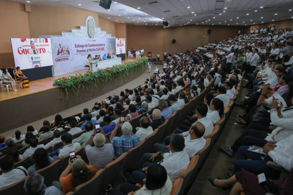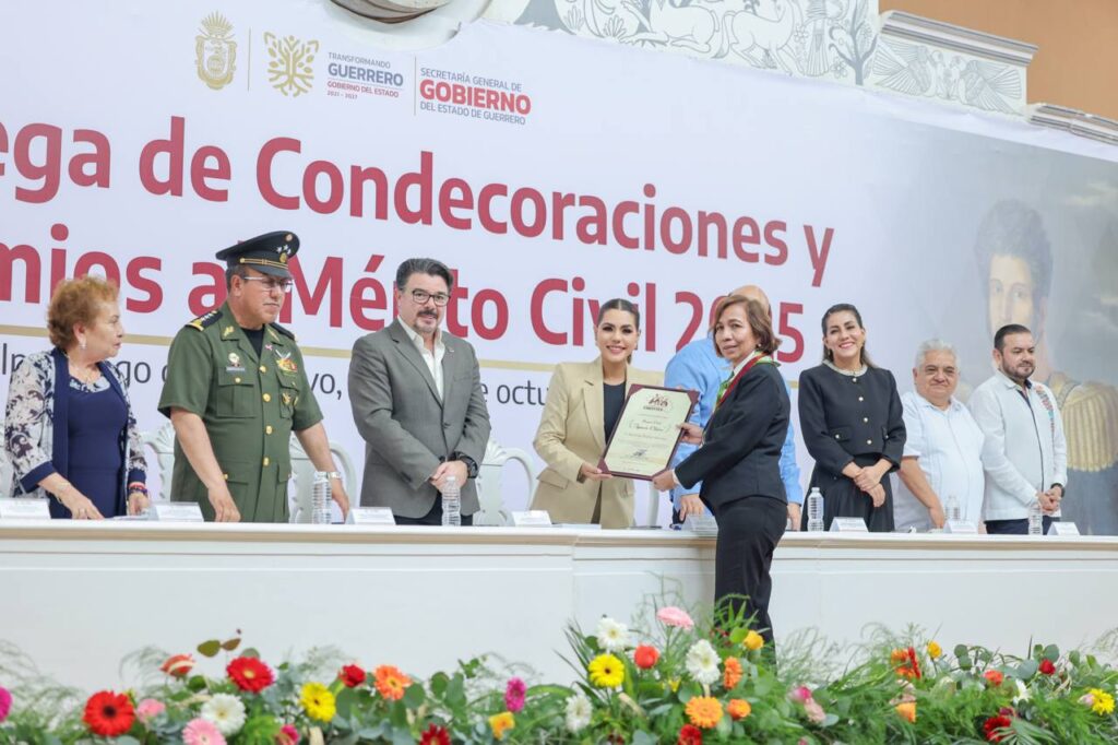 Chilpancingo, Gro., 28 de octubre de 2025. – En el marco del 176 aniversario de la Erección del Estado de Guerrero, la gobernadora Evelyn Salgado Pineda encabezó la ceremonia de entrega de Condecoraciones y Premios al Mérito Civil 2025, un reconocimiento al esfuerzo, talento y vocación de servicio de mujeres y hombres que con su ejemplo engrandecen el nombre de la entidad.