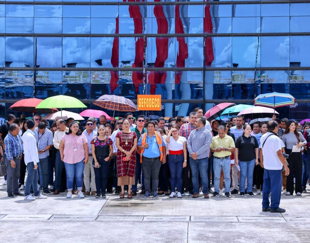 Con la Bandera izada a media asta en memoria de las víctimas de los sismos de 1985 y 2017, más de 3 mil servidores públicos desalojaron de manera ordenada los edificios, siguiendo los protocolos establecidos por la Secretaría de Gestión Integral de Riesgos y Protección Civil.