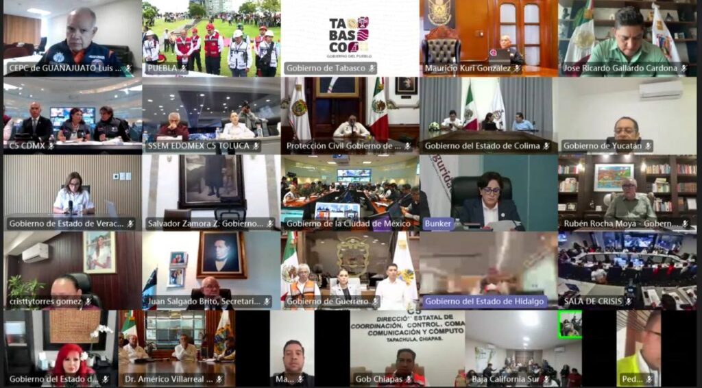 La gobernadora se enlazó con el Comité Nacional de Emergencias como parte del Segundo Simulacro Nacional 2025, encabezado por la Coordinadora Nacional de Protección Civil, Laura Velázquez Arzua y el secretario de Seguridad y Protección Ciudadana Federal, Omar García Harfuch, así como mandos de las fuerzas armadas y navales.