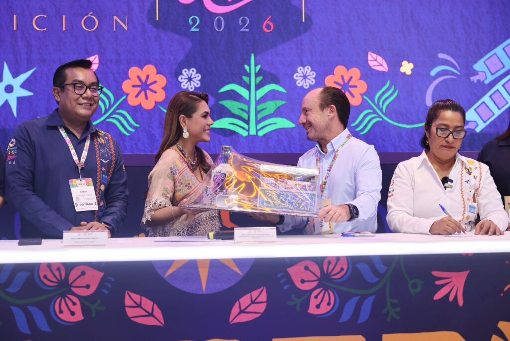 Acapulco, Gro., 28 de abril de 2026.- En el marco de la 50 edición del Tianguis Turístico México 2026, la gobernadora Evelyn Salgado Pineda firmó una serie de convenios para promover la conectividad de los diferentes destinos y se signaron alianzas estratégicas con organismos públicos y privados, promoviendo con unidad y con visión de desarrollo la actividad económica más importante del estado.
