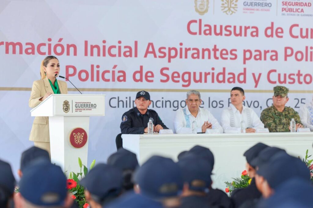 La gobernadora, convocó a los nuevos elementos a no olvidar sus raíces, ideales y principios, y a desempeñarse con lealtad y compromiso hacia el pueblo de Guerrero.