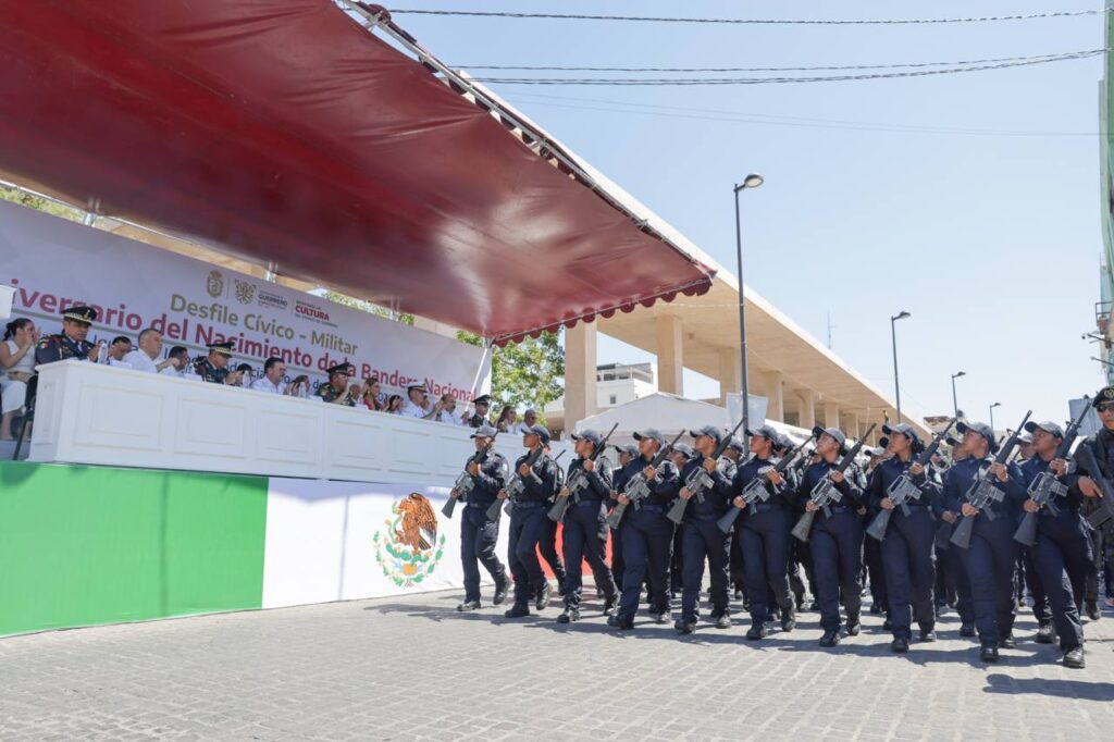 “Más que un emblema, nuestra bandera es memoria viva. Este desfile da muestra de nuestra continuidad histórica; en cada contingente se expresan la disciplina, el honor y la vocación de servicio”, expresó la gobernadora Evelyn Salgado.