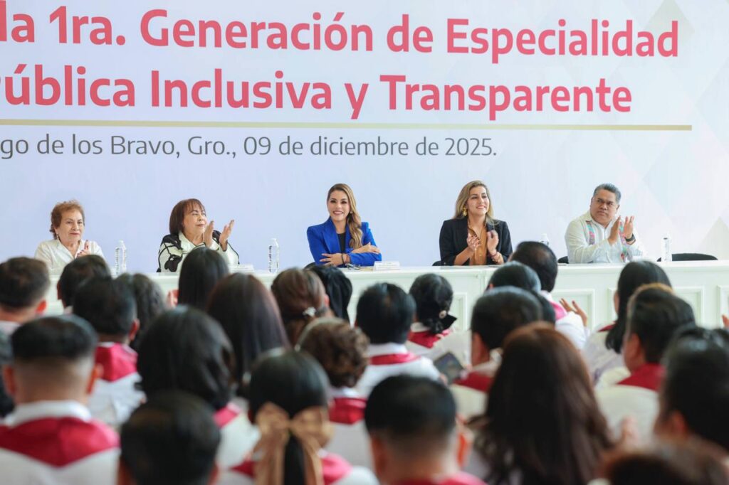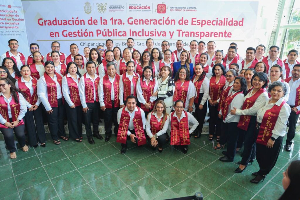 La mandataria estatal acompañó a las y los egresados, entre ellos el senador Félix Salgado Macedonio, quien también concluyó la Especialidad en Gestión Pública Inclusiva y Transparente, un programa diseñado para transformar la administración pública bajo los principios de honestidad, eficiencia y cercanía con el pueblo.