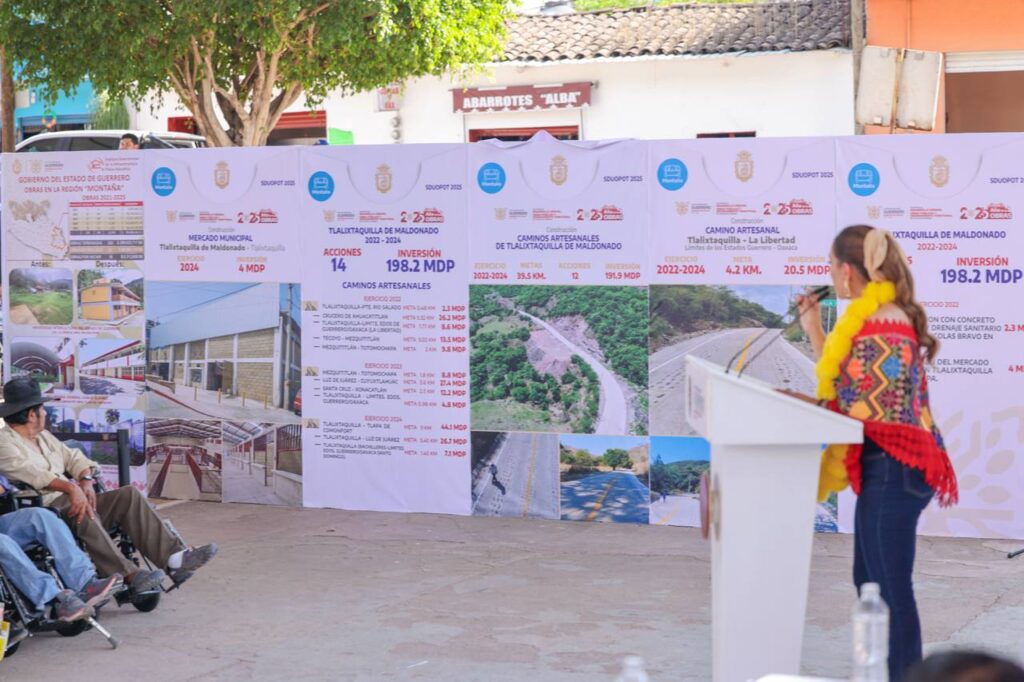 La mandataria destacó que el programa de Caminos Artesanales continuará en La Montaña con el apoyo de la presidenta Claudia Sheinbaum Pardo, especialmente en Tlalixtlaquilla, donde en los últimos tres años se han invertido más de 190 millones de pesos en 12 acciones, lo que ha permitido intervenir casi 40 kilómetros de pavimentación con mano de obra local, mejorando la conectividad de las comunidades.