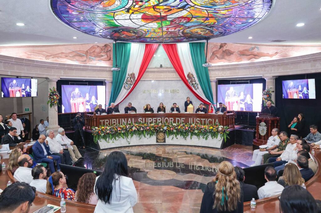 “El Poder Judicial representa uno de los pilares esenciales del Estado mexicano. Su función no solo consiste en aplicar la ley, sino en garantizar la vigencia del Estado de derecho, asegurar la resolución pacífica de los conflictos y salvaguardar los principios que sostienen nuestra vida democrática”, destacó la gobernadora Evelyn Salgado.