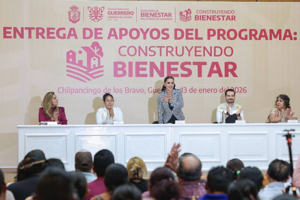Chilpancingo, Gro., 13 de enero de 2026.— Al entregar apoyos del programa Construyendo Bienestar a familias de Chilpancingo por más de 30 millones de pesos, la gobernadora Evelyn Salgado Pineda anunció que para este 2026 el programa será fortalecido con más recursos, sumando una inversión de 258 millones de pesos, con el objetivo de seguir cerrando las brechas de desigualdad en todas las regiones de Guerrero.