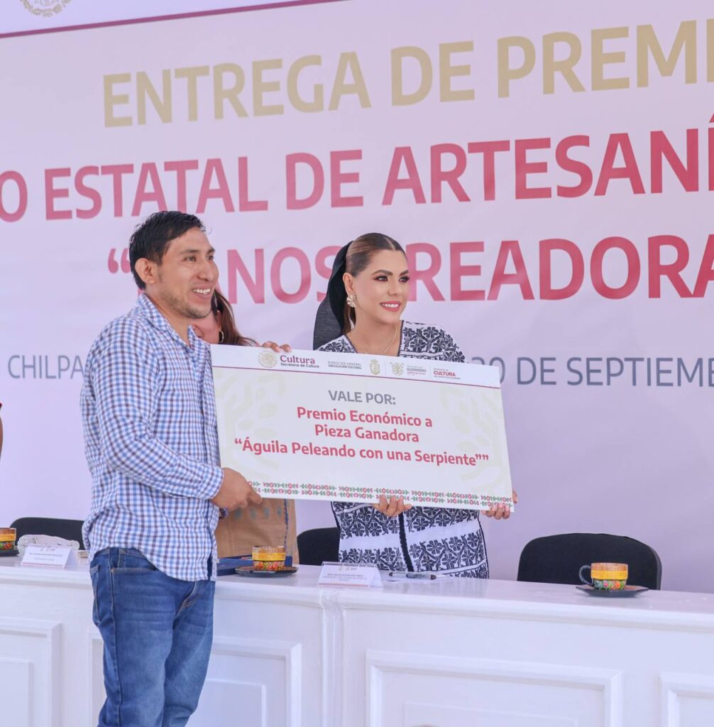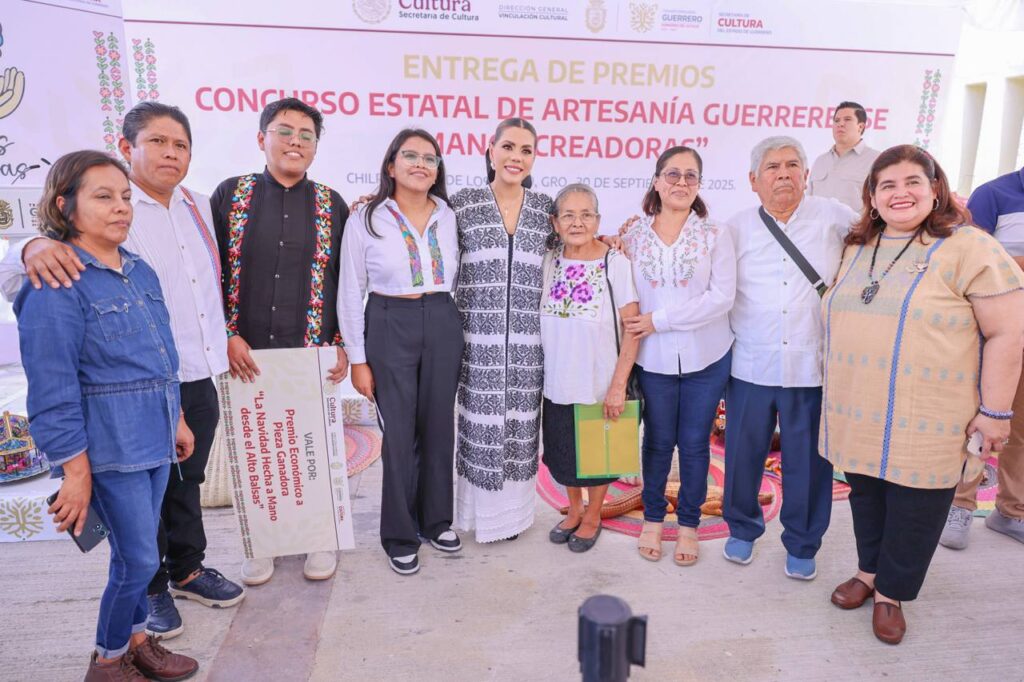 Chilpancingo, Gro., 30 de septiembre de 2025. – Con el compromiso de fortalecer la identidad cultural de Guerrero y reconocer el talento de quienes preservan sus tradiciones, la gobernadora Evelyn Salgado Pineda encabezó la entrega de premios del Concurso «Manos Creadoras 2025», con la participación de más de 70 piezas artesanales, que reivindica el legado ancestral de la artesanía guerrerense.