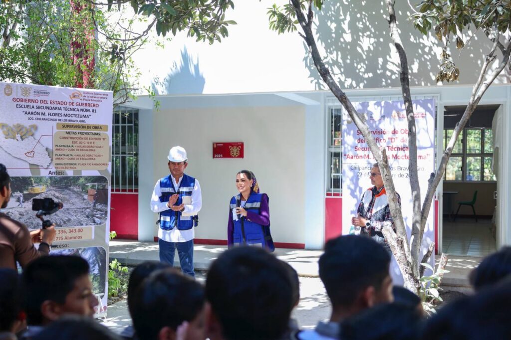Chilpancingo, Gro., 27 de noviembre de 2025.– La gobernadora Evelyn Salgado Pineda realizó un recorrido de supervisión de avance de obras en la Escuela Secundaria Técnica 81 de Chilpancingo, donde se construye un edificio normativo de ocho aulas con una inversión destinada por más de 13 millones de pesos, beneficiando a más de 700 estudiantes.
