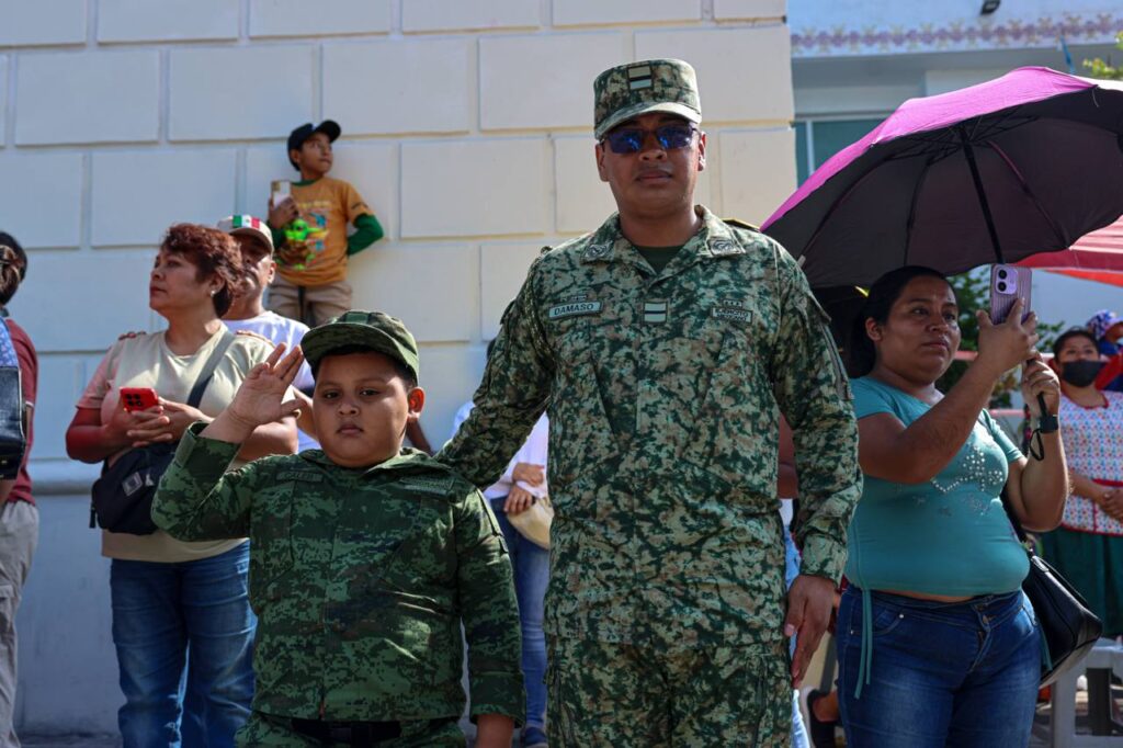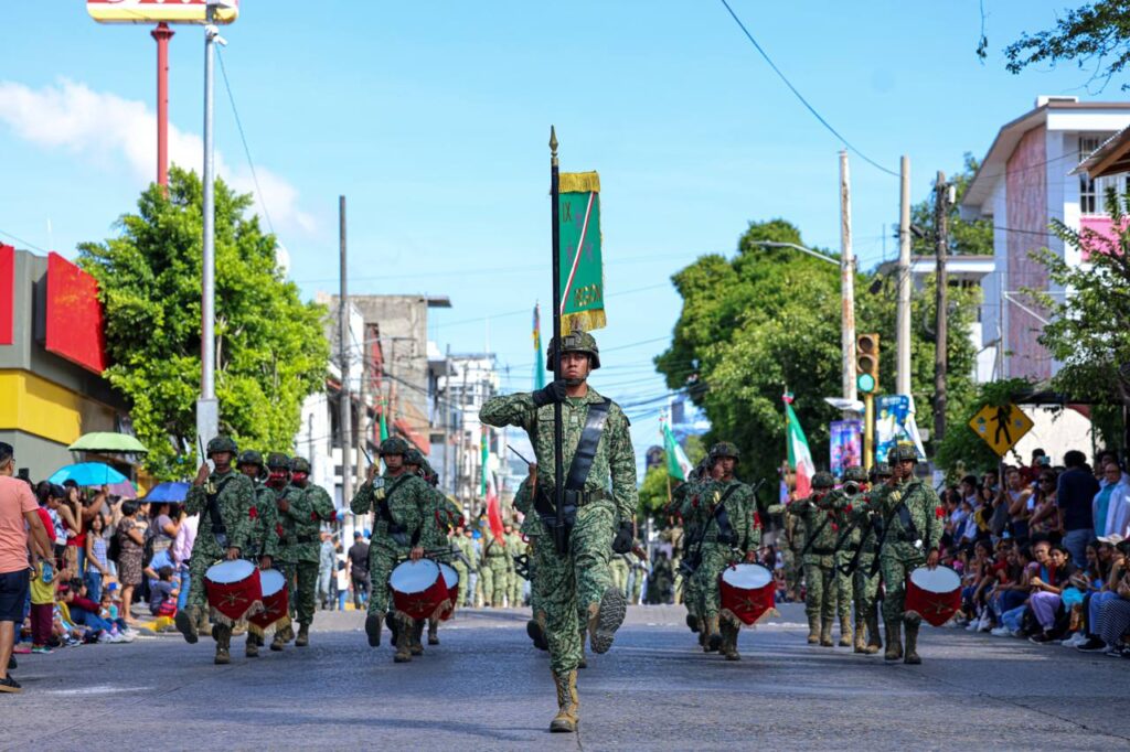 Por su parte, el Coronel de Infantería Juan Sotero García, comandante del 50 Batallón de Infantería, detalló que en el desfile participaron ocho banderas de guerra, 569 elementos de tropa y marinería, 37 vehículos, así como 790 efectivos y 56 unidades de la Secretaría de Seguridad Pública y Protección Civil. También se sumaron 12 binomios montados, 2 mil 754 alumnos y docentes de diversos planteles educativos, además de 18 escaramuzas y 24 charros, concluyendo la jornada cívica sin novedad.