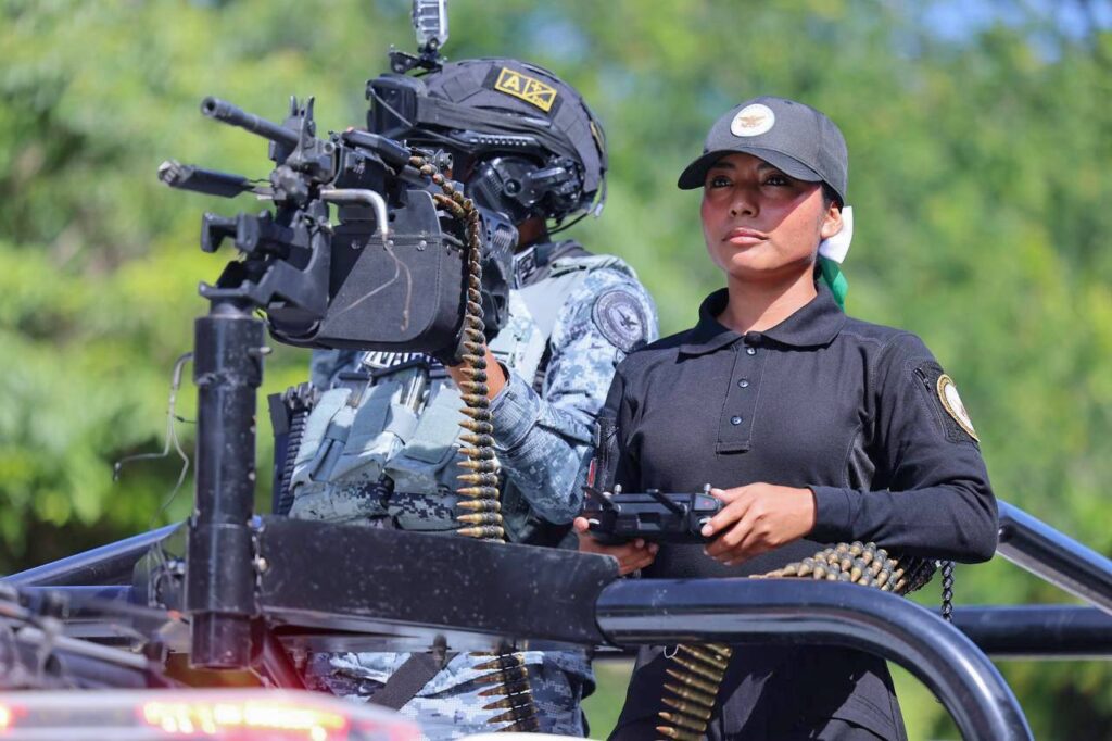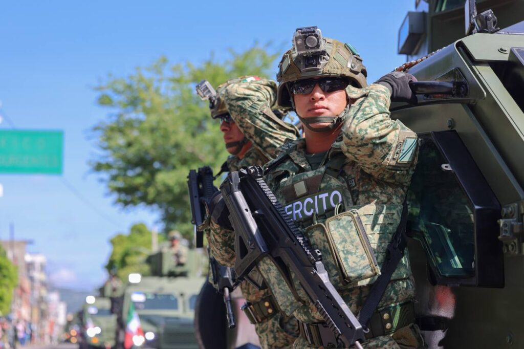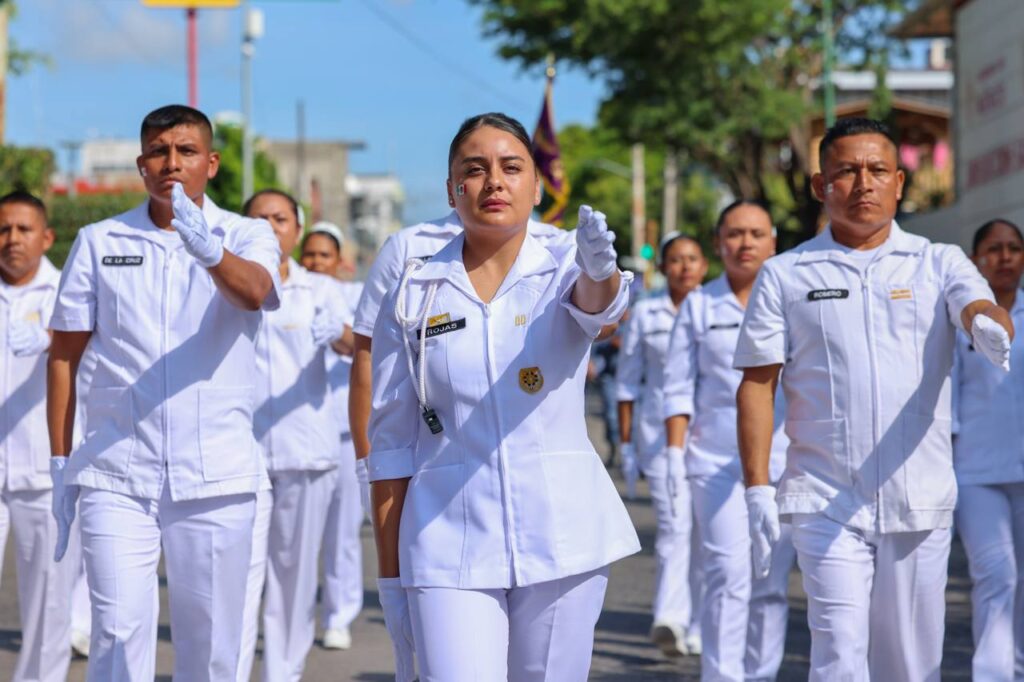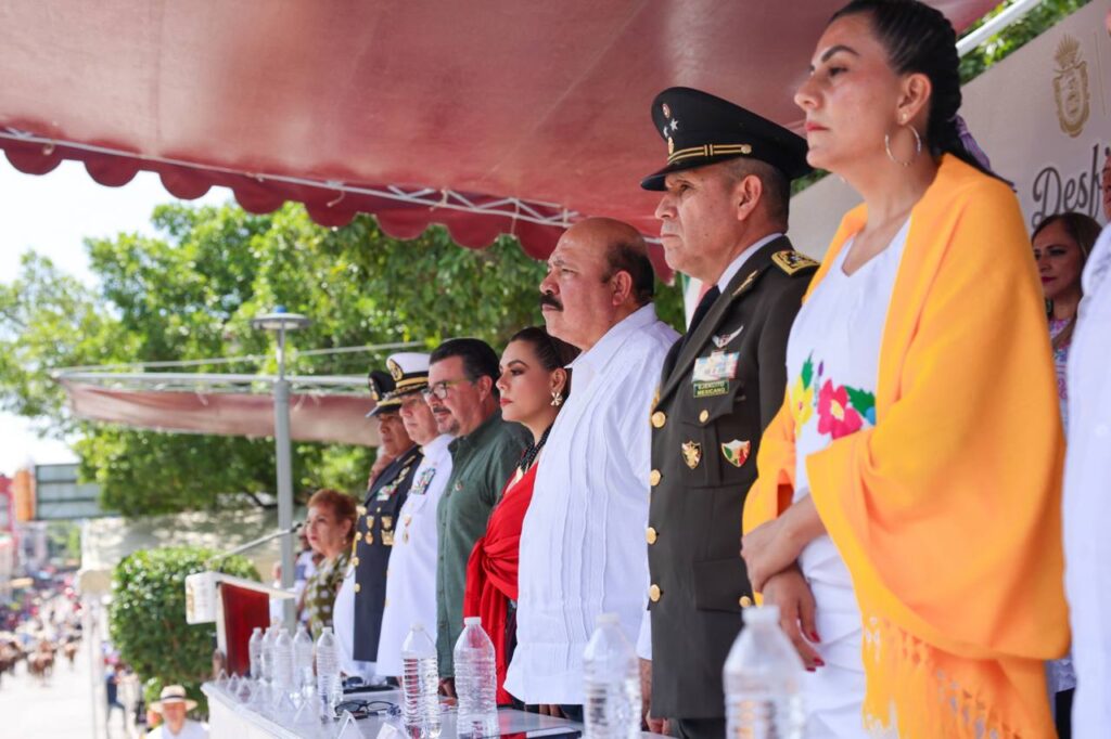Con la autorización de la gobernadora, dio inicio el desfile, encabezando la columna del contingente, los elementos y las unidades del Ejército, Fuerza Aérea, la Marina y la Guardia Nacional, con sus respectivas banderas de guerra.