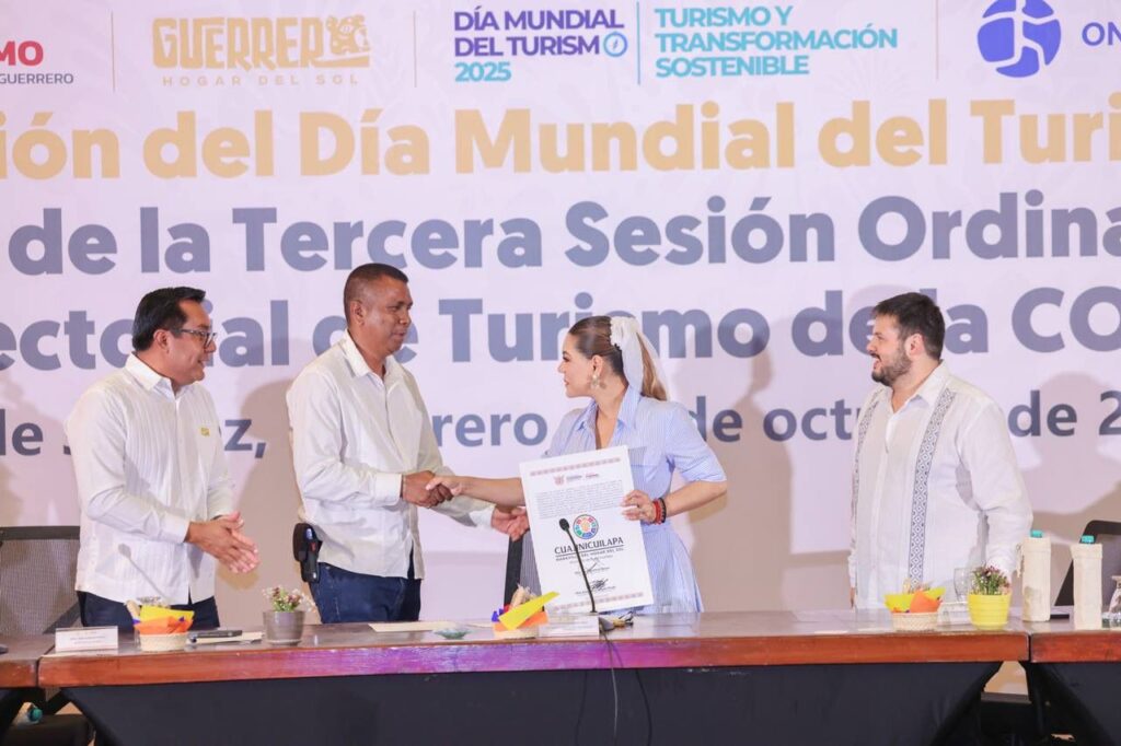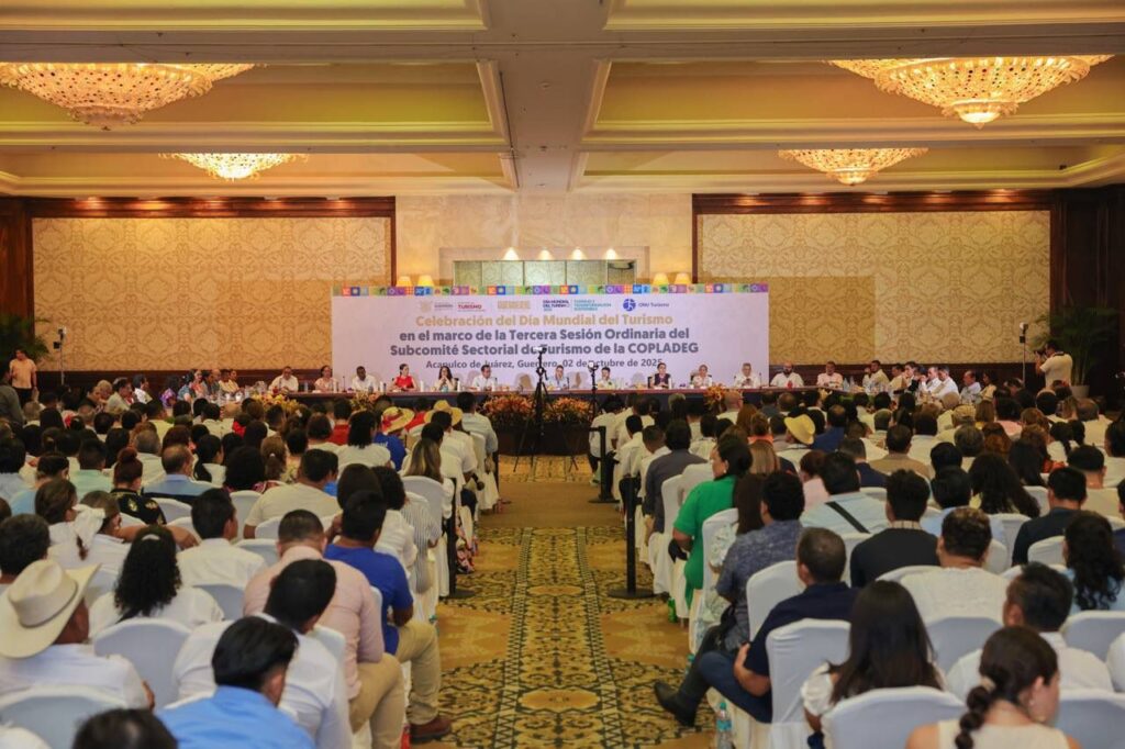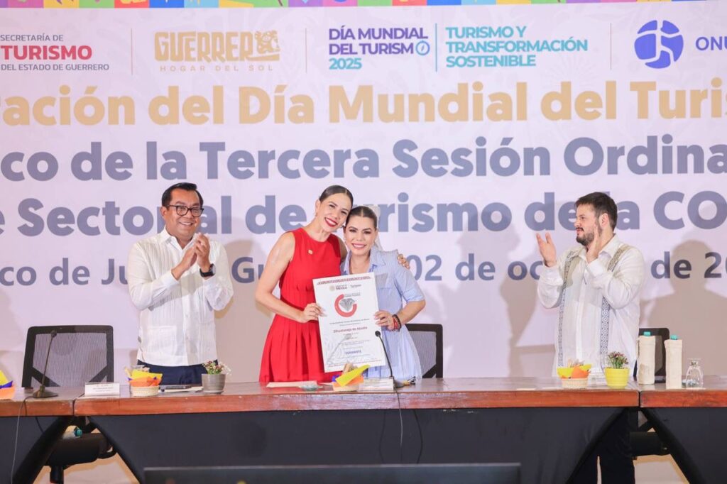 Acapulco, Gro., 2 de octubre de 2025.- «Desde el gobierno del estado seguiremos impulsando políticas públicas que fortalezcan al turismo, ampliando y diversificando los destinos de cada región, para que nuestro estado se consolide con firmeza como un referente nacional e internacional», expresó la gobernadora Evelyn Salgado Pineda, durante la celebración del Día Mundial del Turismo, en el que se reconoció a quienes se han destacado por su labor en favor de este importante sector.