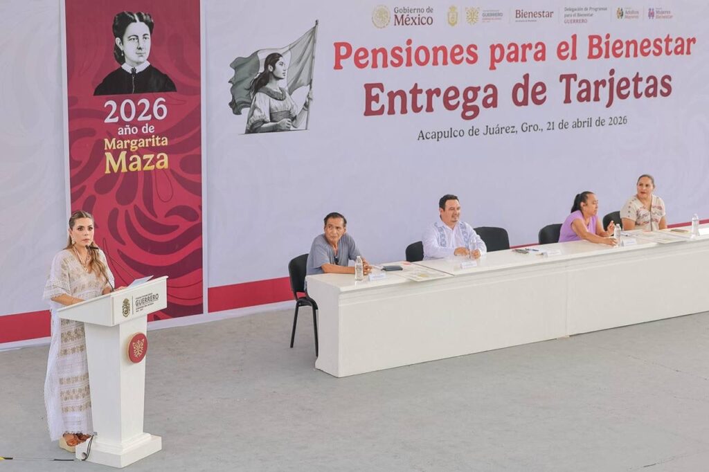 Acapulco, Gro., 21 de abril de 2026.- “Vamos a seguirnos sumando con decisión y con determinación, para seguir apoyando a todas las mujeres, a nuestros adultos mayores, a los jóvenes, a las niñas, a los niños, a todas y a todos. Y yo confío y estoy segura, que de la mano de todas y de todos y haciendo equipo, vamos a lograr esta transformación de Guerrero”, señaló la gobernadora Evelyn Salgado Pineda durante la entrega de tarjetas de los programas Pensión Mujeres Bienestar y Pensión para el Bienestar de las Personas Adultas Mayores.