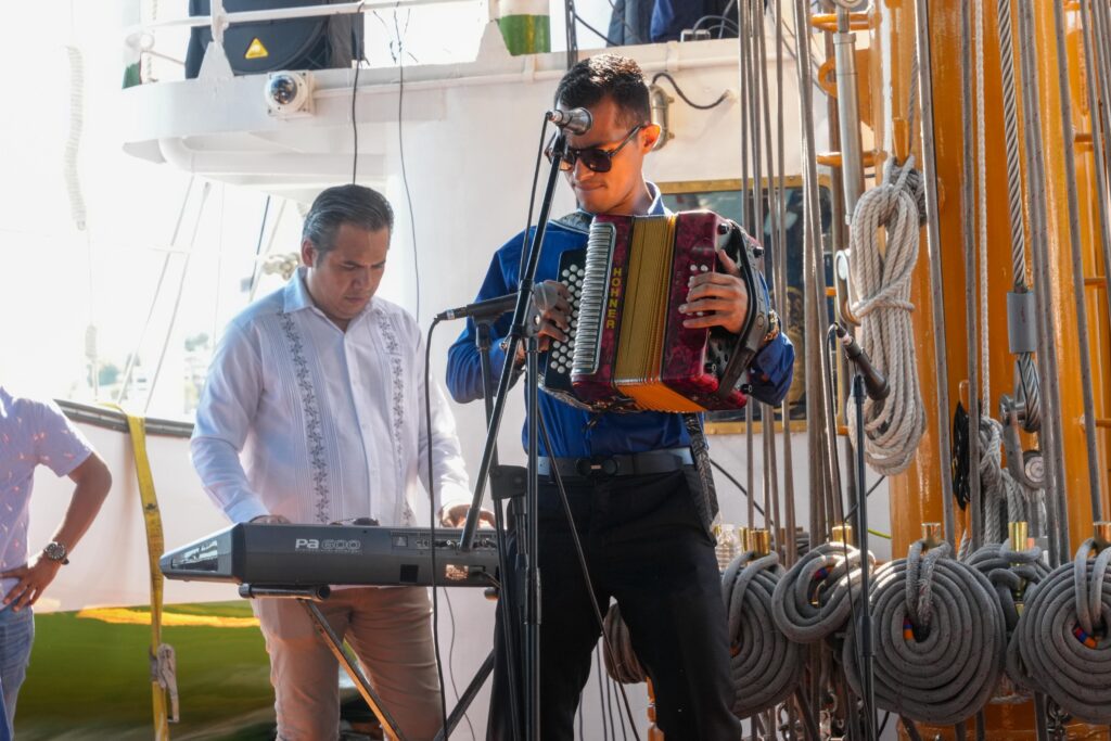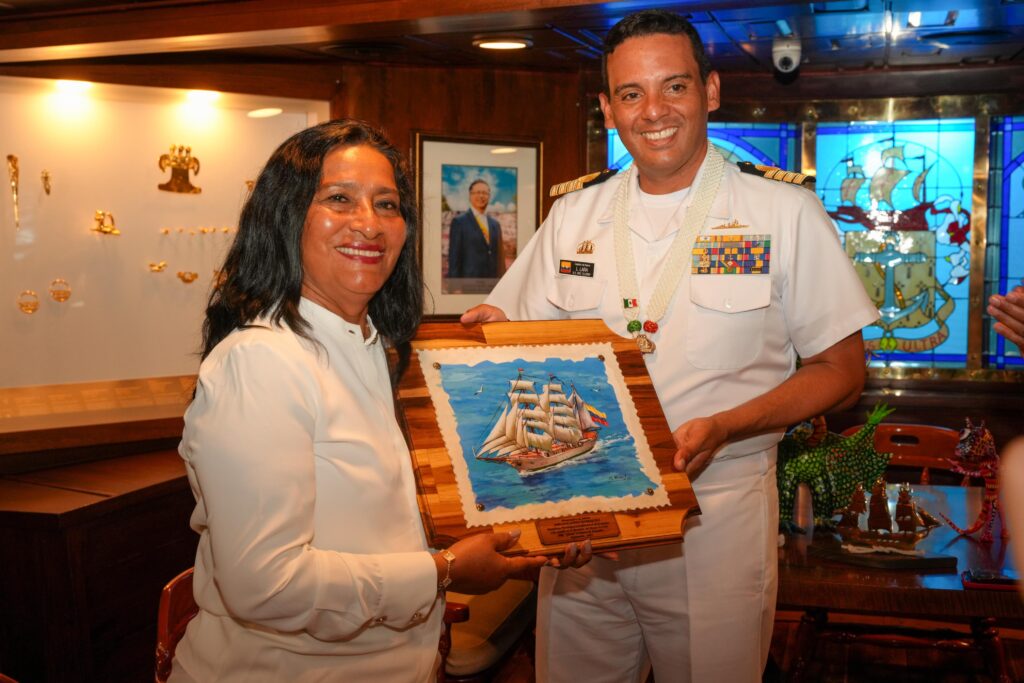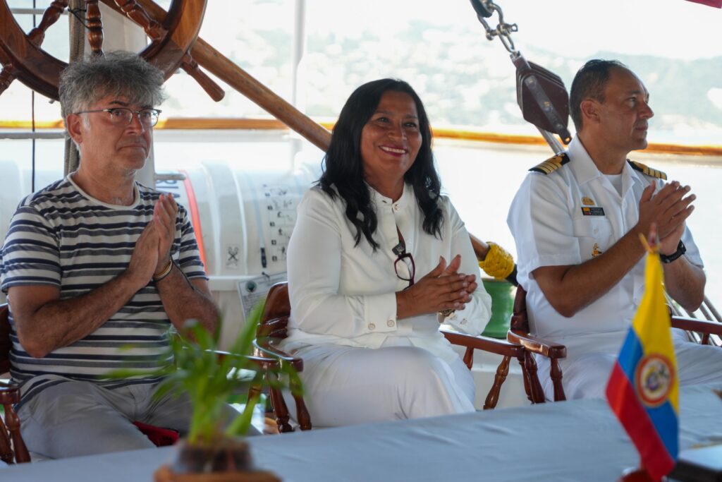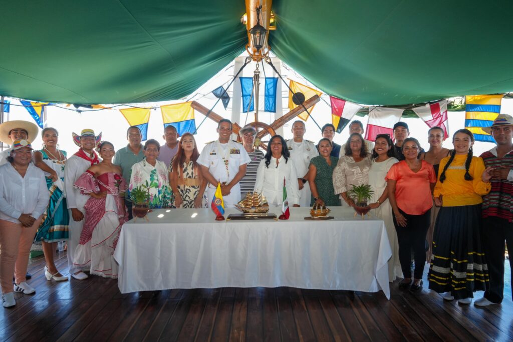 En la presentación estuvieron presentes la secretaria general del Ayuntamiento, Leticia Lozano Zavala; el comandante del Buque Escuela ARC Gloria, Luis Fernando Lara; el agregado naval de la embajada de Colombia, Henry Barón; y la regidora presidenta de la Comisión de Bienestar Social, Marlén González Gómez, además de representantes diplomáticos y autoridades municipales.