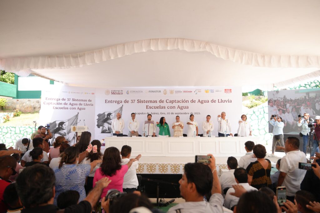 La gobernadora Evelyn Salgado Pineda informó que se han instalado 38 sistemas de captación pluvial en beneficio de 37 escuelas de Acapulco y que la iniciativa se extenderá a Coyuca de Benítez y Atoyac de Álvarez, con el fin de garantizar condiciones dignas de aprendizaje para miles de estudiantes.