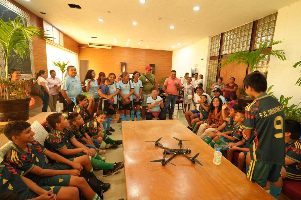 *Entrega uniformes a integrantes del club Dragones FC del Kilómetro 21 y reitera su apoyo a la infancia