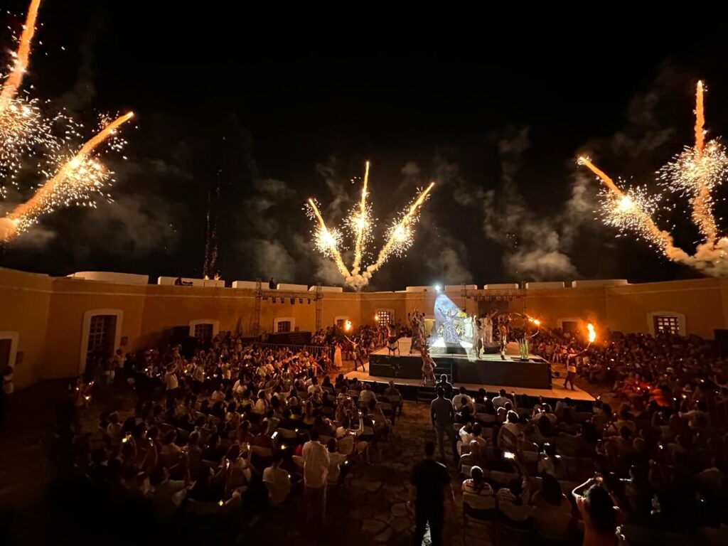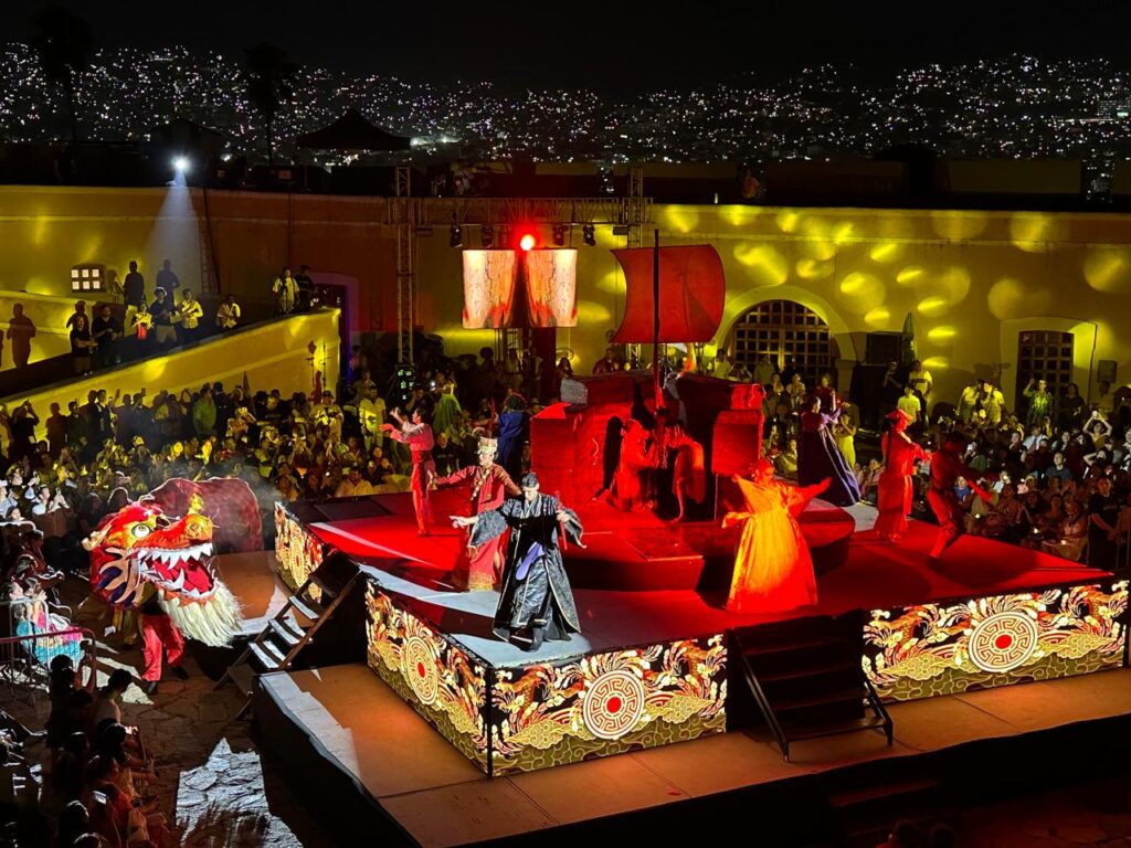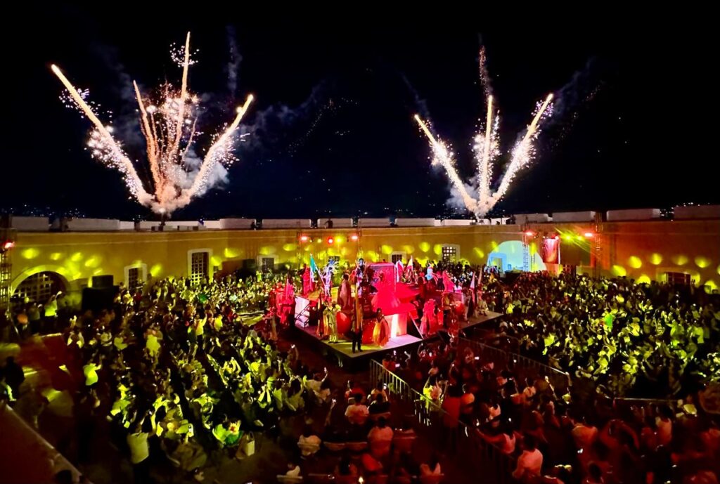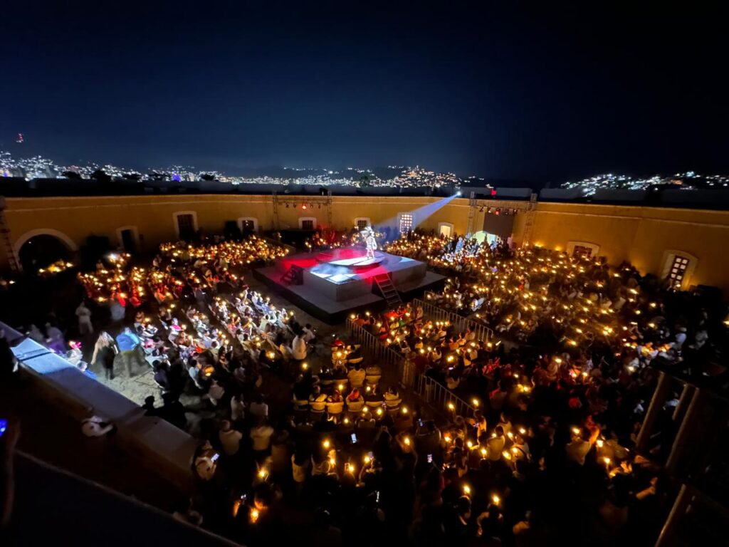 Acapulco, Gro., 14 de noviembre de 2025.- “Acuérdate de Acapulco”, espectáculo que combina las artes escénicas para contar la historia y las leyendas de Guerrero, cautivó a los asistentes con su colorido, talento y riqueza cultural, con la presidenta municipal, Abelina López Rodríguez, presente en el emblemático Fuerte de San Diego durante una de las jornadas más memorables del Festival Internacional La Nao 2025.