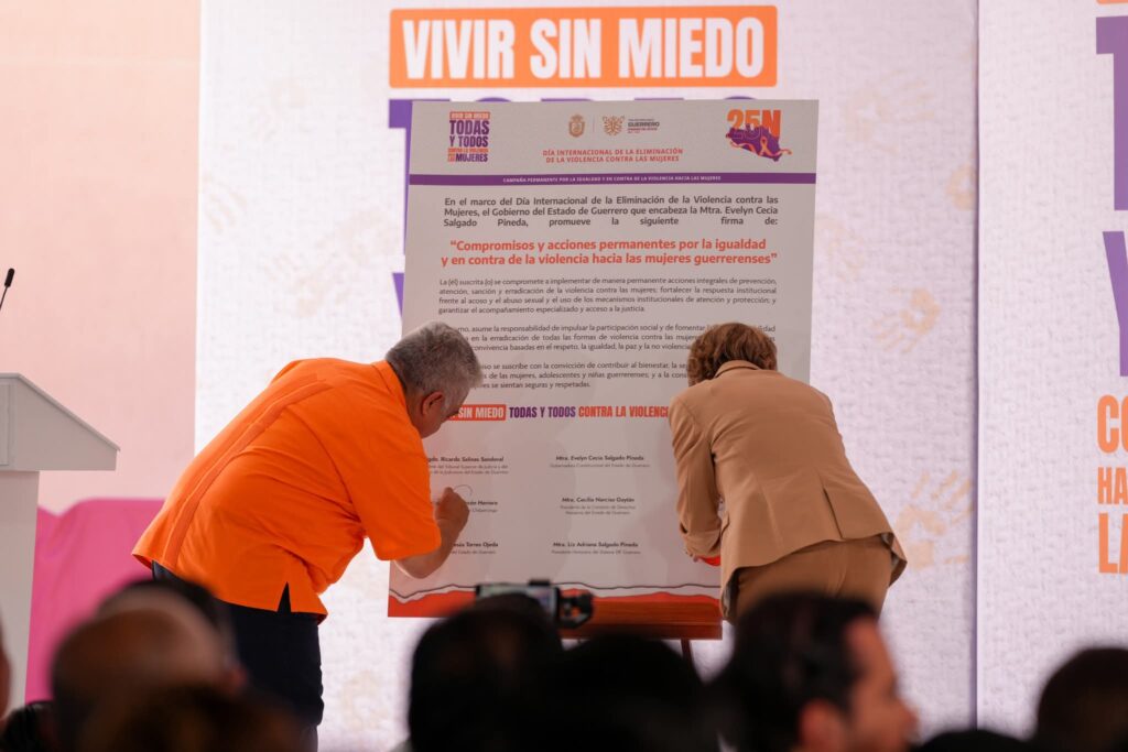 En la capital del estado, la alcaldesa Abelina López Rodríguez acompañó a la gobernadora Evelyn Salgado Pineda durante la Feria de Servicios y la presentación del Informe Anual sobre las Acciones contra la Violencia de Género.