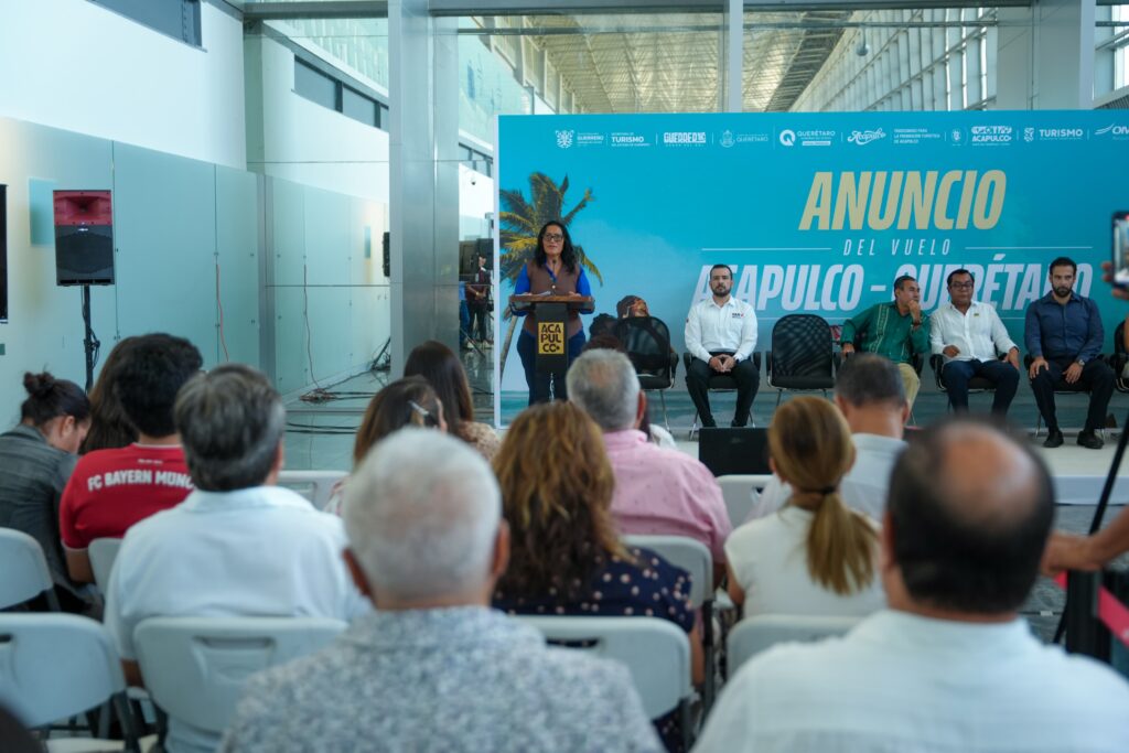“La presidenta ha sido firme en su instrucción de recuperar la conectividad aérea de Acapulco. Hoy, gracias a la colaboración del secretario Simón Quiñones, de la directora de Fidetur, Aída Pérez, y del respaldo del gobernador de Querétaro, logramos concretar este vuelo que abrirá nuevas oportunidades turísticas y comerciales”, expresó el funcionario municipal, quien agregó que esta alianza permitirá impulsar proyectos complementarios como la Ruta del Vino y el Mezcal, que unirá a Acapulco, Taxco y el Bajío con circuitos turísticos y gastronómicos de alto potencial.