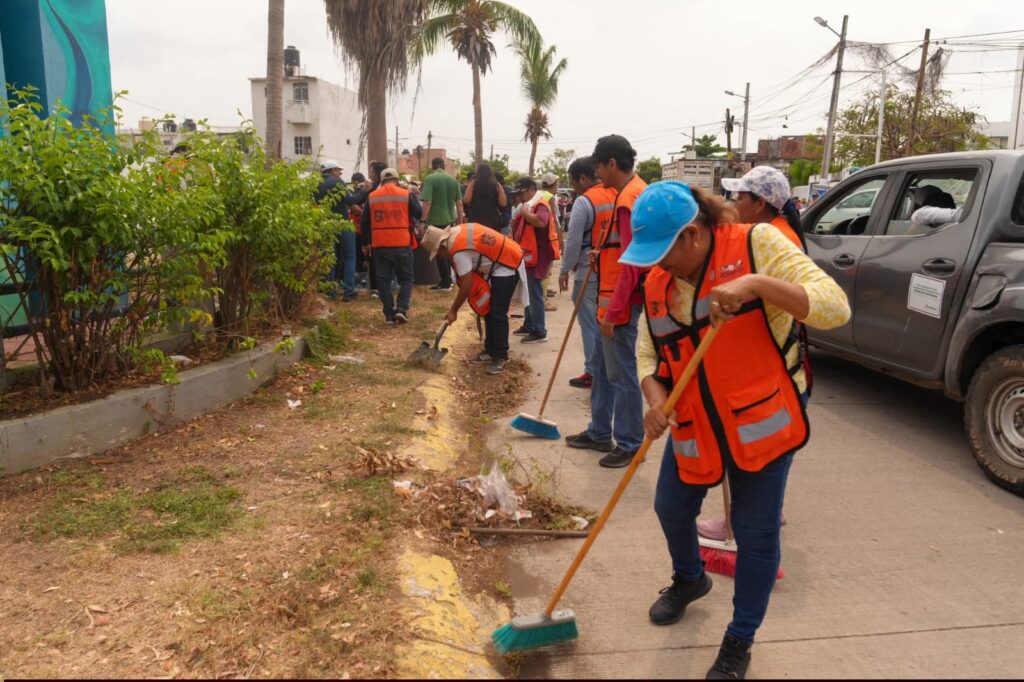 La presidenta municipal, Abelina López Rodríguez, dio inicio a este programa en el fraccionamiento Costa Dorada, donde más de mil personas —entre personal del Ayuntamiento, vecinas, vecinos y voluntariado— se sumaron a una intervención de limpieza integral. La cobertura incluyó tramos del bulevar principal y zonas aledañas, con brigadas organizadas y apoyo de maquinaria que permitió ampliar el alcance de las acciones.