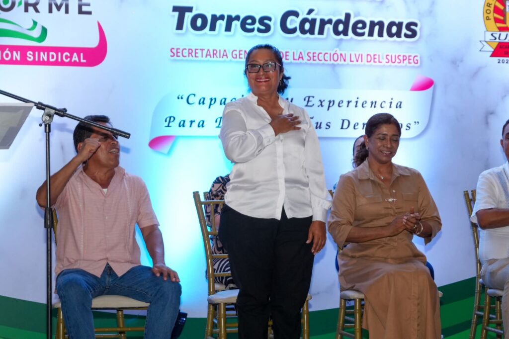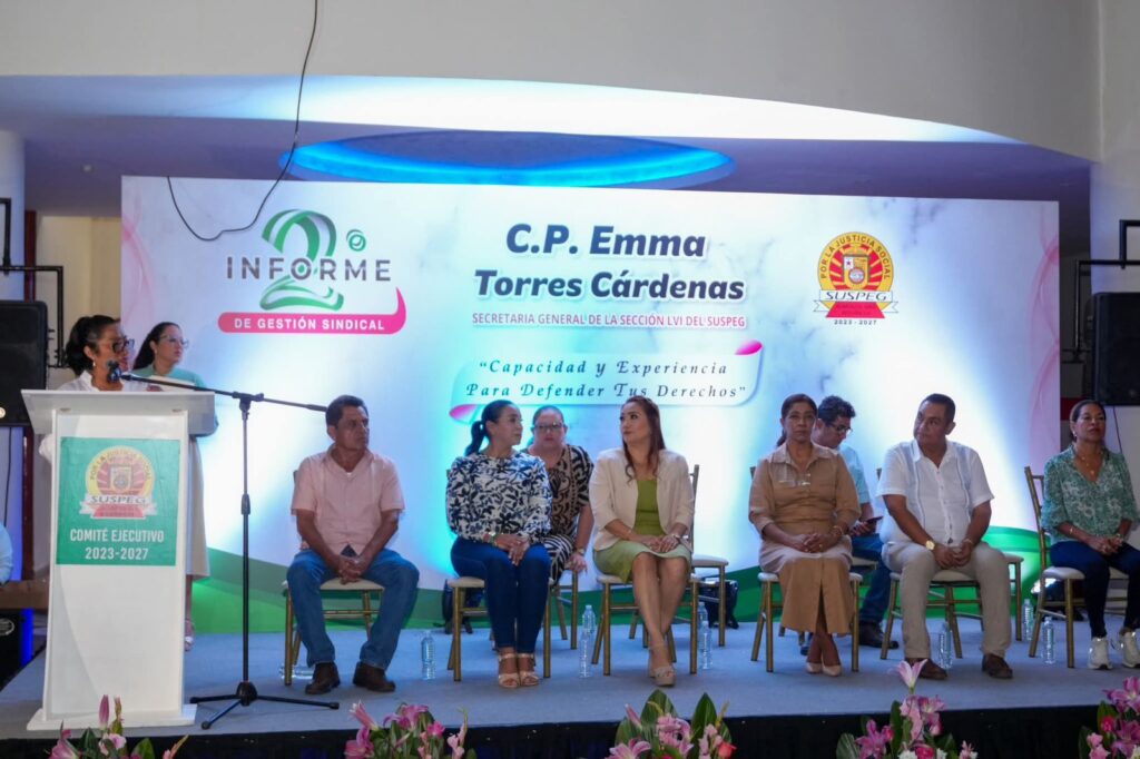 Por su parte, la secretaria general del SUSPEG, Adela Hernández Angelito, resaltó el cumplimiento irrestricto de incremento salarial, ascensos, recategorizaciones, becas, estímulos, subsidio del ISR, prima vacacional y aguinaldo. Señaló que estos avances brindan certeza para créditos y jubilaciones.
