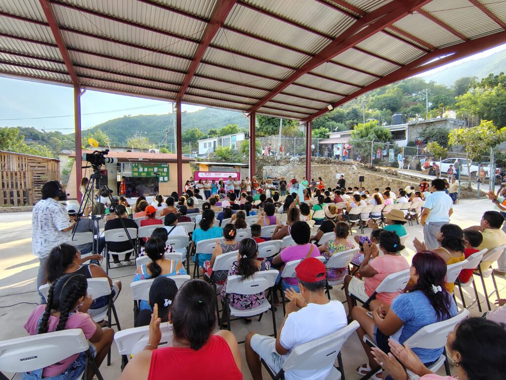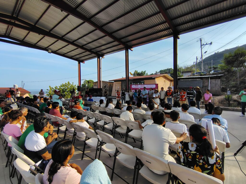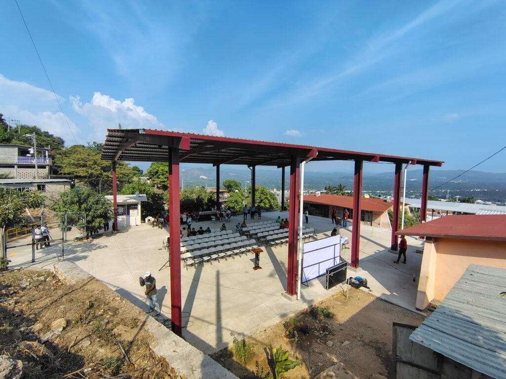 El recorrido concluyó en la Escuela Telesecundaria Leona Vicario, donde se inauguró una cancha deportiva de 423 metros cuadrados, diseñada con características especiales para resistir fenómenos hidrometeorológicos, con una inversión de 3 millones 140 mil pesos, en beneficio directo de la comunidad escolar y de las familias de la colonia.