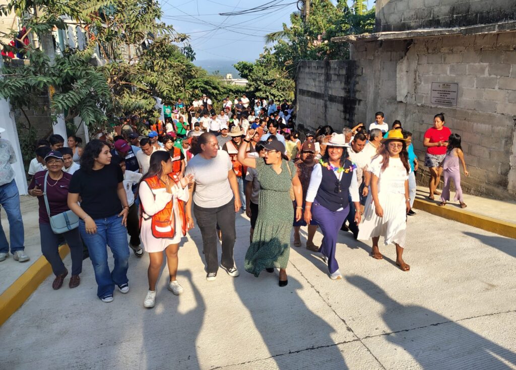 Durante esta gira dominical, la presidenta municipal entregó la rehabilitación de la calle Ejidatarios, también conocida como María Eugenia Montúfar, donde se pavimentaron 333 metros cuadrados, equivalentes a aproximadamente 60 metros lineales, además de la introducción de drenaje sanitario y red de agua potable.