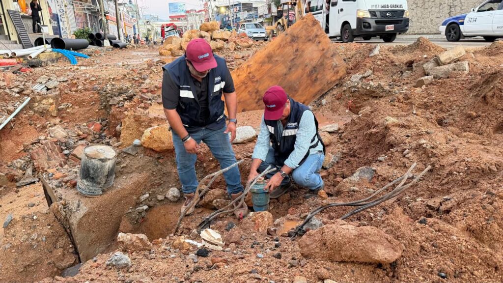 Acapulco, Gro., 16 de diciembre de 2025.- La Comisión de Agua Potable y Alcantarillado del Municipio de Acapulco (Capama) atendió una fuga registrada en una tubería de 24 pulgadas ubicada sobre la avenida Ejido, a la altura de la calle Tres, derivada de labores de pavimentación efectuadas por una empresa privada.