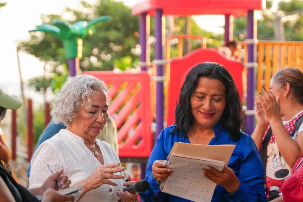Durante el encuentro, la alcaldesa fue recibida con entusiasmo por vecinas y vecinos que agradecieron el respaldo brindado durante su administración y la creación de este parque que ha beneficiado a generaciones de niñas, niños y jóvenes de la zona.