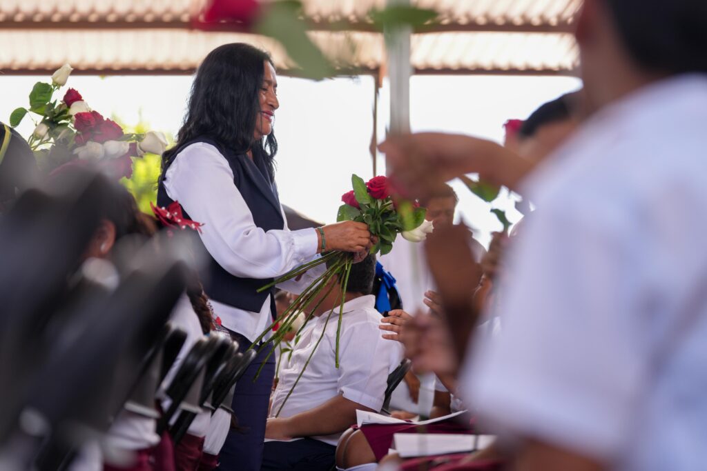A su vez, la secretaria de Bienestar y Desarrollo Comunitario, Flora Contreras Santos, destacó la importancia del programa y agradeció la colaboración de las escuelas primarias bilingües e instituciones educativas presentes.