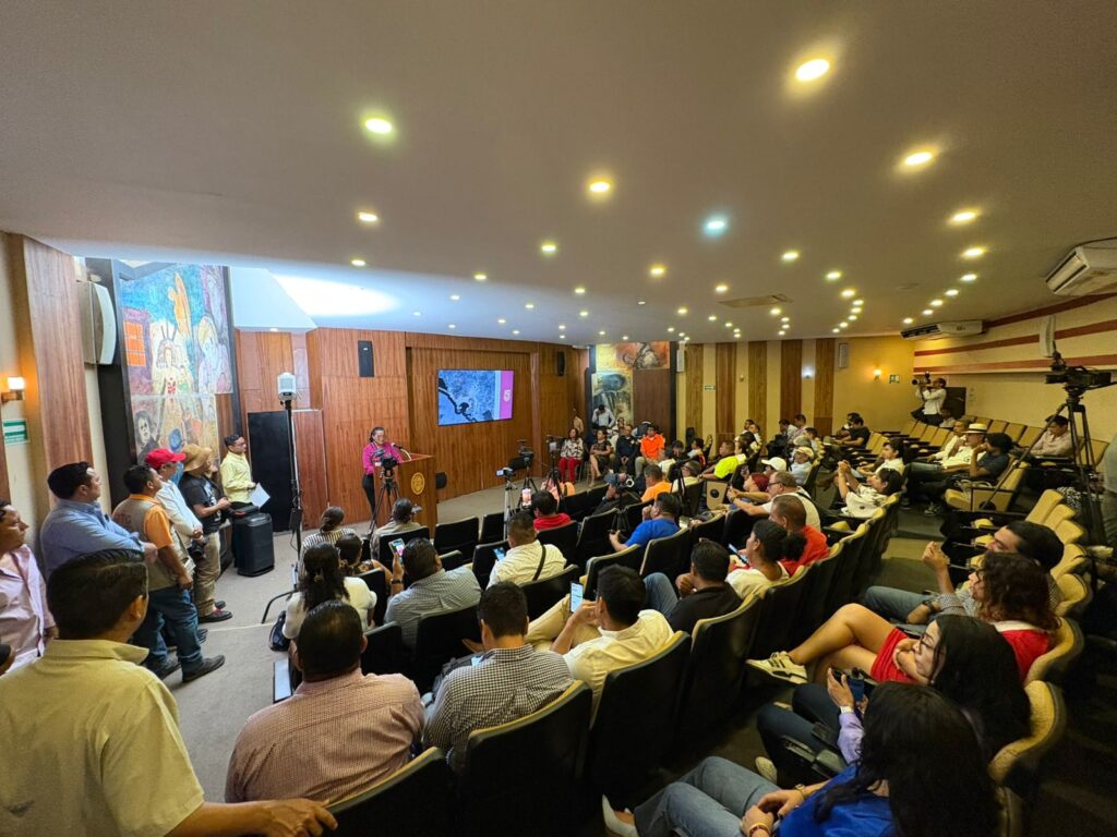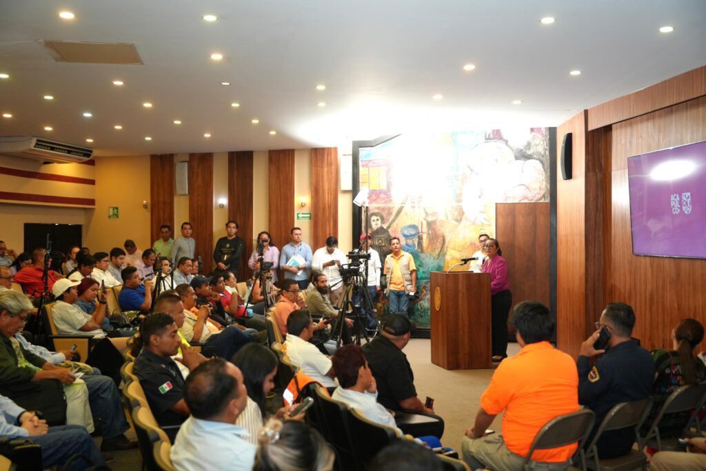 En el encuentro con medios, presentó un balance de las acciones implementadas tras el paso de los huracanes Otis y John, así como el diagnóstico de afectaciones y la estructura operativa del Consejo de Gestión Integral de Riesgos y Protección Civil, que coordina tareas en 25 zonas distribuidas en todo Acapulco.