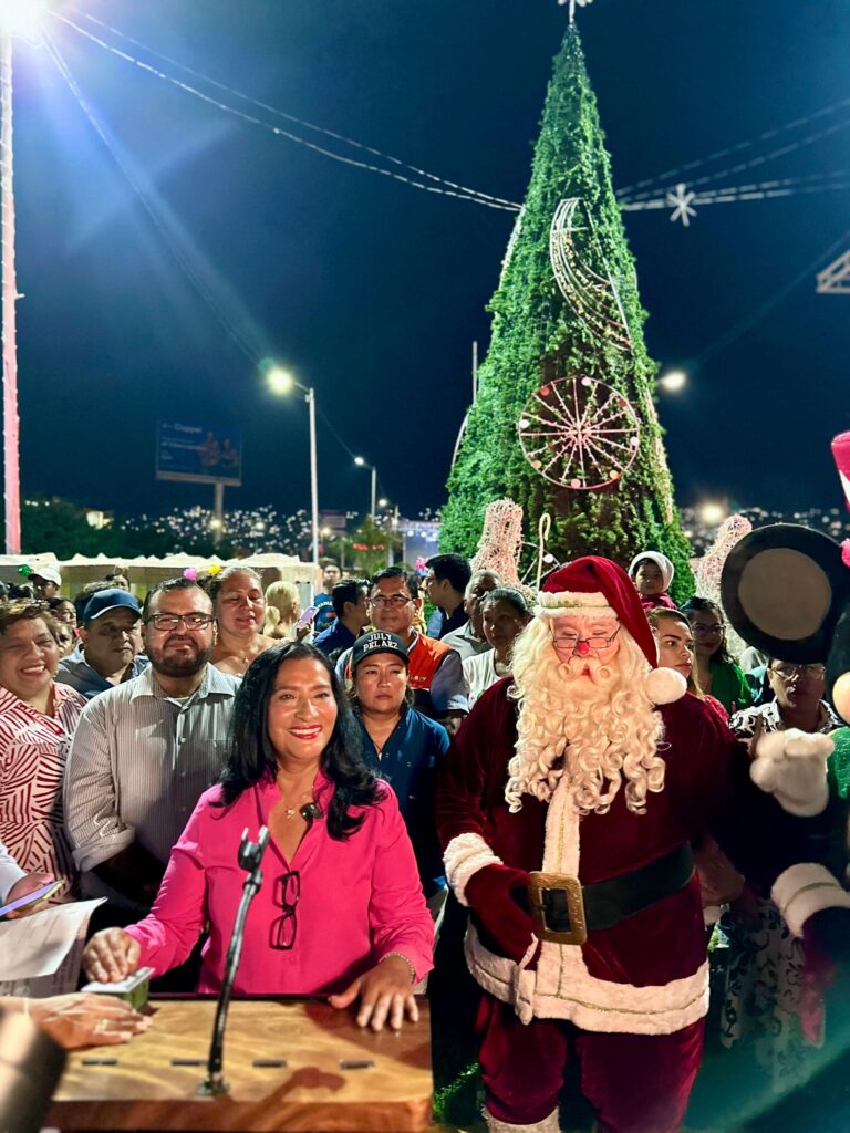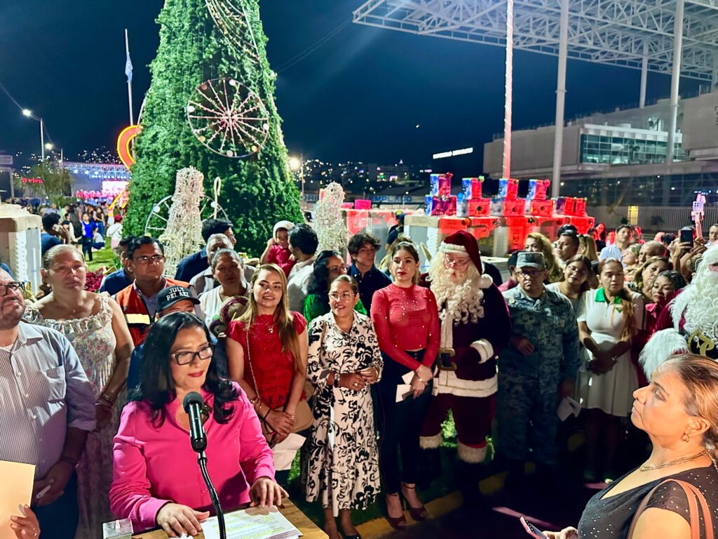 Acapulco, Gro., 15 de diciembre de 2025.- Con un mensaje de paz y esperanza, la presidenta municipal Abelina López Rodríguez encendió el Árbol Navideño Monumental instalado en la Vía Rápida, ante cientos de acapulqueños que se dieron cita para celebrar la temporada decembrina.