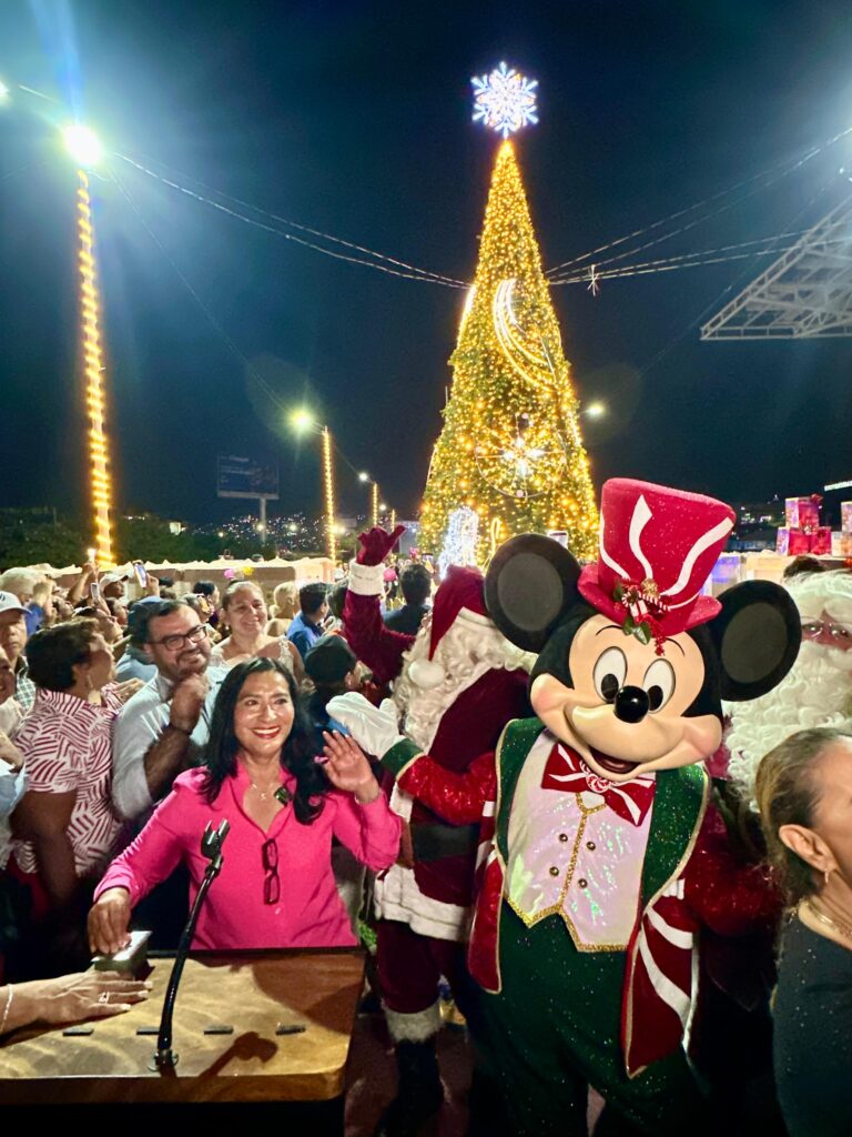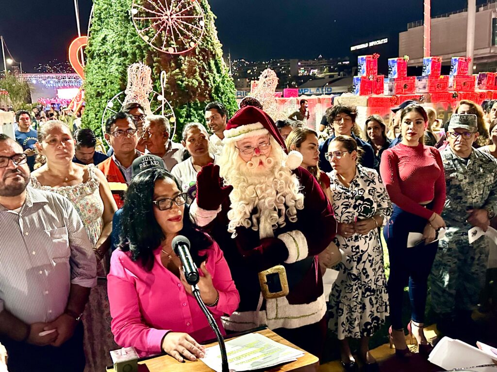 «Este encendido del árbol no es un acto simbólico, es un mensaje de luz, de paz, de alegría, de esperanza, y sobre todo, de convivencia; este es también un recordatorio de que Acapulco sigue con su luz viva, sigue adelante, con esa voluntad firme de su gente y con el apoyo de quienes creen en la reconstrucción y la paz social», afirmó la alcaldesa momentos antes de iluminar el pino.