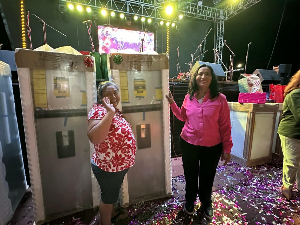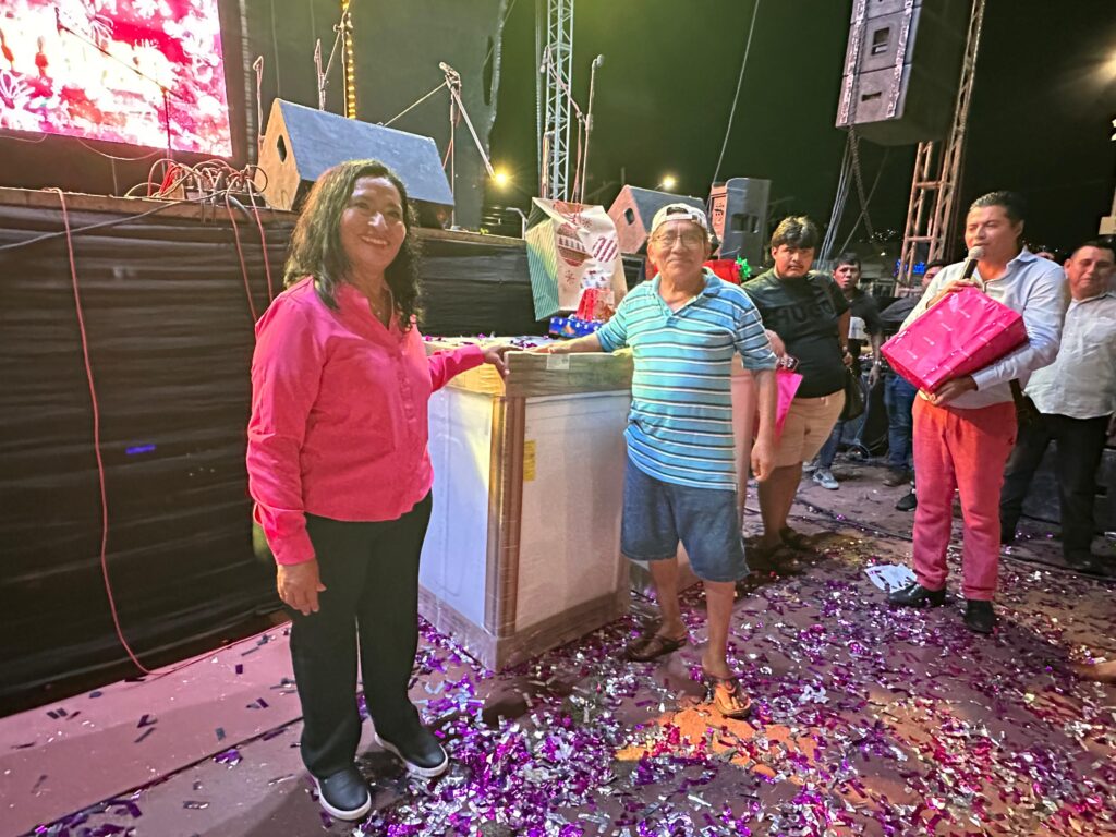 La presidenta municipal sorprendió a los asistentes con la rifa de regalos que incluyó refrigeradores, lavadoras y otros electrodomésticos.