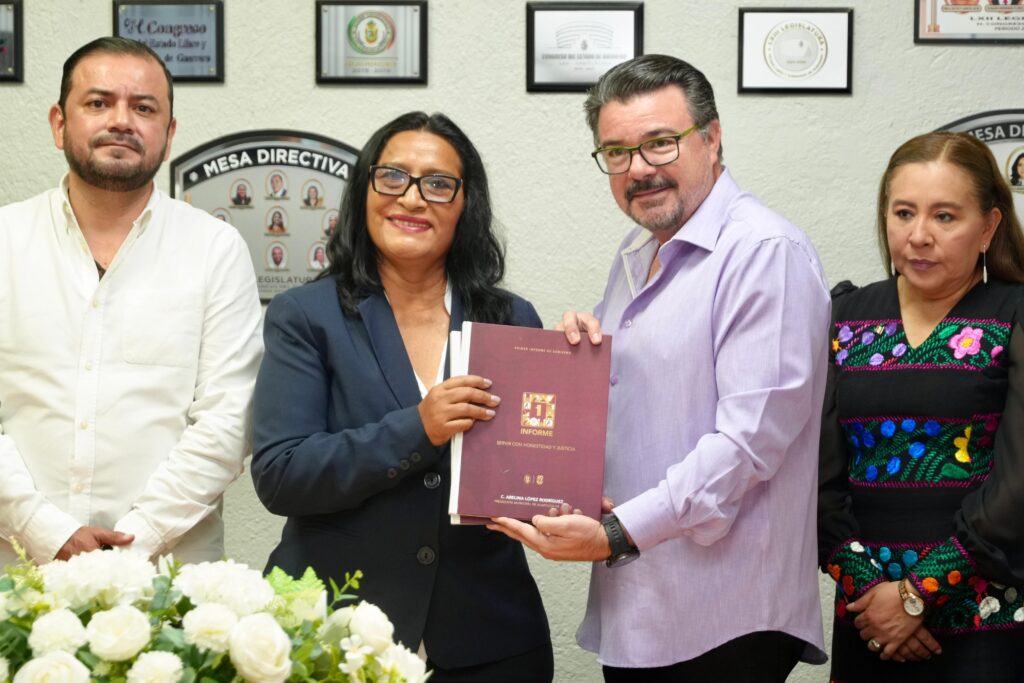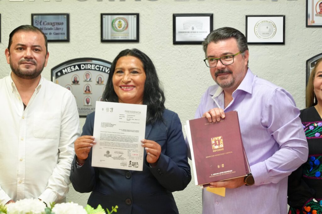 “Presidenta, felicitamos que cumpla en tiempo y forma con lo que establece la Ley Orgánica del Municipio Libre. Hoy comparte con el Congreso y la sociedad los avances de su gestión al frente de Acapulco, uno de los municipios más importantes del país”, expresó.